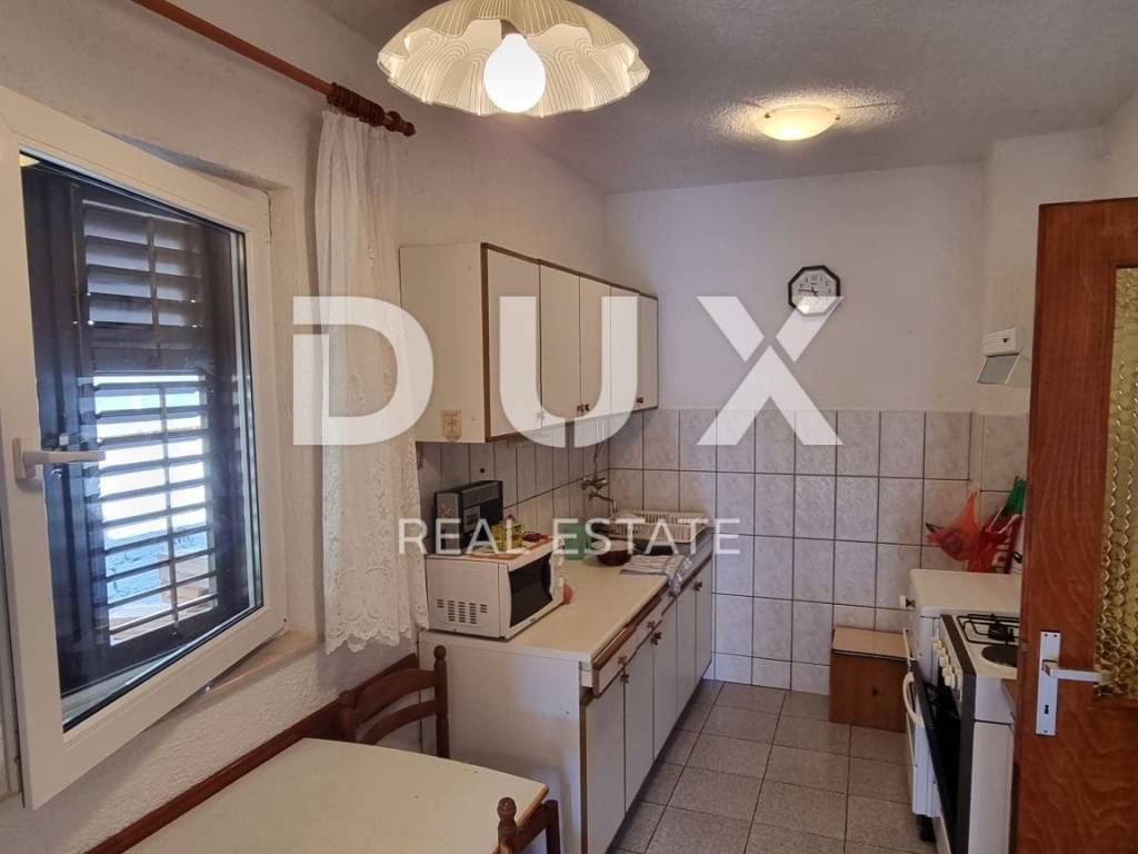 We are selling a detached house with a garage and an outbuilding located in the town of Senj. In nature, a spacious garden with a yard and a garden, a parking lot and a garage, an outbuilding and a house consisting of a basement and a first floor. In the basement there is a kitchen with a dining room, a bedroom and a bathroom, while on the first floor there is an apartment with two bedrooms, two bathrooms, a kitchen, a dining room and a living room with a balcony. Investment required. Good investment opportunity!