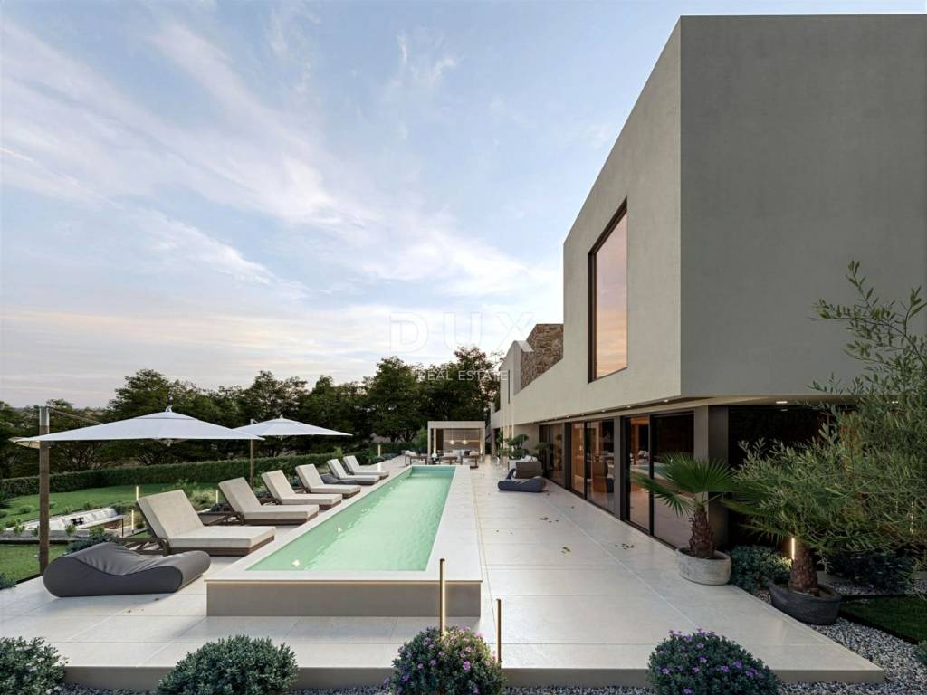 On the edge of the settlement in the vicinity of Motovun, in harmony with gently green terraces of vineyards and olive groves and lush forest hills, an exclusive ultimate villa is for sale.