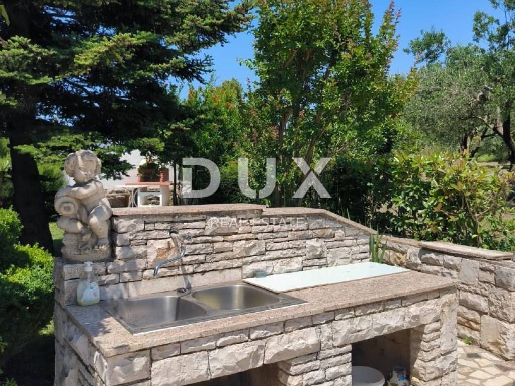 We are selling a unique property on the market in the area of Medulin, in an isolated location, close to all facilities and only 900 meters from the first beaches. It is a hacienda that covers 7952 m2 with a wide range of plants and beautiful greenery. Within the land there is a house built in 1995 in very good condition, spread over two floors. On the ground floor there is a 70 m2 apartment consisting of two bedrooms, two terraces, and a bathroom. On the first floor there is a mirrored apartment with a terrace that offers a view of the sea. As for heating and cooling, air conditioners and a stove have been installed. The house also has a basement. This extremely special property has been used for a long time for the purpose of tourist rental, so that the future owner can rent the property in addition to his own enjoyment of this paradise. Many years of investment and maintenance of this hacienda resulted in a true paradise on earth Why? Because this hacienda offers 150 olive trees, which every other year yield about 500 liters of olive oil, 250 vines, bananas, palms, Greek fir, blue fir, golden cypress, pomika, fig, cherry, apricot, pomegranate, tomato, orange, peppers, potatoes, walnuts, jasmine and many other plants. In addition to the fact that the future owner will have his own paradise, all the amenities you need are within 1 km of shops, restaurants, beaches, gas stations and other facilities, and you are completely isolated from the rest of the world, which is a very, very rare phenomenon on the market. . The entire hacienda is completely fenced, and has its own water well 50 meters deep. This paradise is waiting for its new owner.