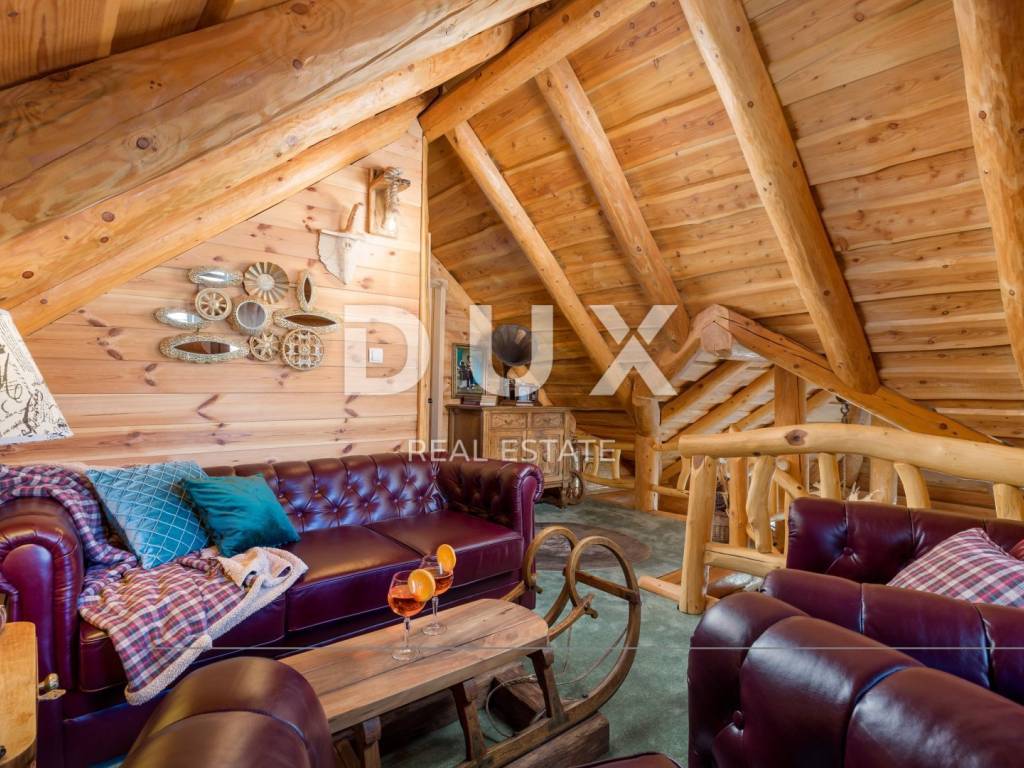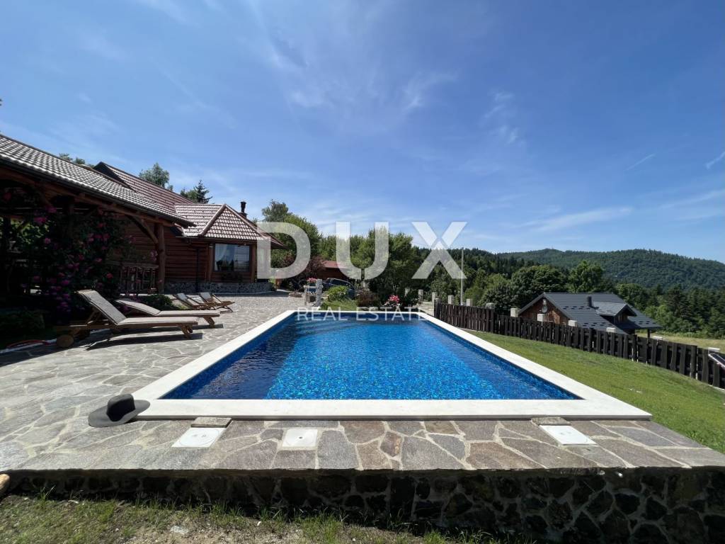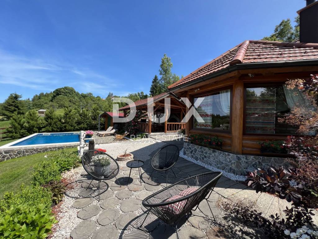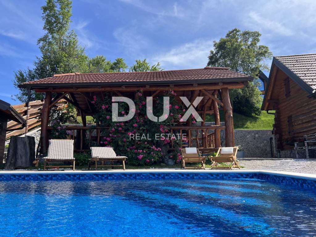 We are selling a beautiful wooden villa with a swimming pool and wellness! The villa is located in the Kupjak settlement in the very heart of Gorski Kotro. It consists of the main building where there are two bedrooms, a spacious living room, a kitchen with a dining room, a gallery and a balcony. Next to the main building there is a covered gazebo with a barbecue and a swimming pool that is in the final stage of being equipped. The villa also has a separate commercial facility with a wellness facility that includes a jacuzzi, sauna, shower, toilet and a beautiful terrace with a view of the mountains and surrounding villages. Heating in the buildings is underfloor, and in some parts there are additionally glamox panels and a wood-burning fireplace. The villa has a spacious garden of 1800 m2 where there are also two parking spaces. It was built in 2012, and the owners invested in the villa every year in order to provide future customers and clients with the best possible/luxurious accommodation. The villa has all the necessary papers and is ready to welcome its new owners.