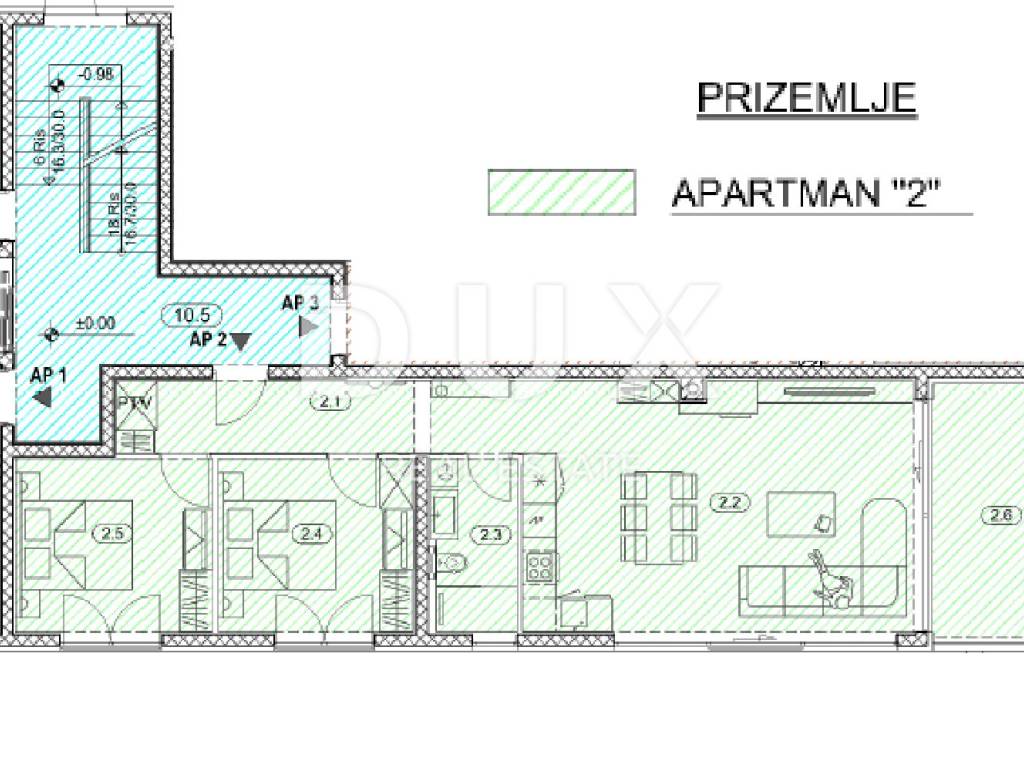 The apartment consists of: Entrance Kitchen / dining room / living room Bathroom Room 1 Room 2 Covered balcony The apartment is located in a quiet and peaceful location, and yet in the immediate vicinity of all the necessary amenities for a quality life. The apartment is south-oriented with large glass walls in all rooms on the south side, so that from those rooms there is a panoramic view of the entire Kvarner Bay. The apartment consists of a large living room, which is designed as a spacious open space with access to the terrace, kitchen, 2 bedrooms, 1 bathroom and a hallway. The building in which the apartment is located is well built and luxuriously equipped, all installed materials, floor and wall coverings are of the highest standards. - facade stone wool 10 cm thick - underfloor heating - heat pumps - high quality aluminum carpentry. The building in which the apartment is located consists of a total of 9 apartments. The building has an elevator, the apartment has 2 parking spaces in the garage (Parking space 3 - 11.96m2 and Parking space 4 - 12.01m2 = total 23.97m2) Clean and tidy property. Certainly a beautiful property for a luxurious family life, but also suitable as an investment in the form of elite tourism. This property is 450m away from the sea and the beach as the crow flies, or 1.4km by car (about 3 minutes). A UNIQUE PROPERTY DEFINITELY WORTH YOUR ATTENTION IN A GREAT LOCATION!!! Opatija: Opatija, a beautiful coastal town located on the Adriatic Sea, is a famous tourist destination for tourists from all over the world. The city is surrounded by beautiful nature, at the foot of the Učka mountain. Real estate in Opatija offers a priceless view of the sea and the surrounding islands of Krk and Cres. Opatija is surrounded by charming small towns with old houses located in narrow streets rich in history. The streets of the city of Opatija are made up of properties that stand out with their specific architecture and villas that date from the Habsburg period. A large selection of beaches, crystal clear sea and various tourist services are the key factors that make Opatija a perfect tourist destination recognized by neighboring countries as an excellent investment choice. Real estate prices in this area are rising, rental occupancy is excellent, which has resulted in a return on investment of 5% to 10% and attracting foreign investors. Dear clients, the agency commission is charged in accordance with the General terms and conditions of business: www.dux-nekretnine.hr/opci-uvjeti-poslovanja Dear potential buyers, tenants and lessees, viewing the property that you are interested in and in which you have an interest is possible only and exclusively with the signing of the Real Estate Brokerage Agreement, for the purpose of protecting the owner of the property from visits by unregistered persons, and in accordance with the Data Protection Act and the Real Estate Brokerage Act. When viewing each property, the potential buyer/lessee/lessee is required to fill out and sign the Real Estate Brokerage Agreement, which states the following: - basic information about the potential buyer/lessee/lessee - basic information about the agency - the amount of the agency commission The agency commission for the buyer is 3 % (+25% VAT) of the total agreed purchase price. The agency commission for the lessee is one monthly rent (+ 25% VAT).