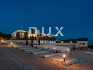 We are selling this beautiful semi-detached villa in an excellent and quiet location near Novalja. The villa is designed as a duplex where in the first house we find an apartment with a large open space living room with kitchen and dining room with access to a spacious terrace with a swimming pool, sunbathing area, relax zone and barbecue, four bedrooms and as many as five bathrooms. The second house is designed as a three-room apartment with a kitchen and living room, two bathrooms with access to a private terrace with a swimming pool and a barbecue area. Next to the house we have a tennis court and an auxiliary facility. This beautiful and luxurious property is located on a plot of 32,000 m2, which provides absolute privacy, peace and comfort. Both villas are completely luxuriously and designer furnished, where every detail was carefully considered. The property is rented for tourists during the season. Viewing the property is possible with an appointment announced in advance.