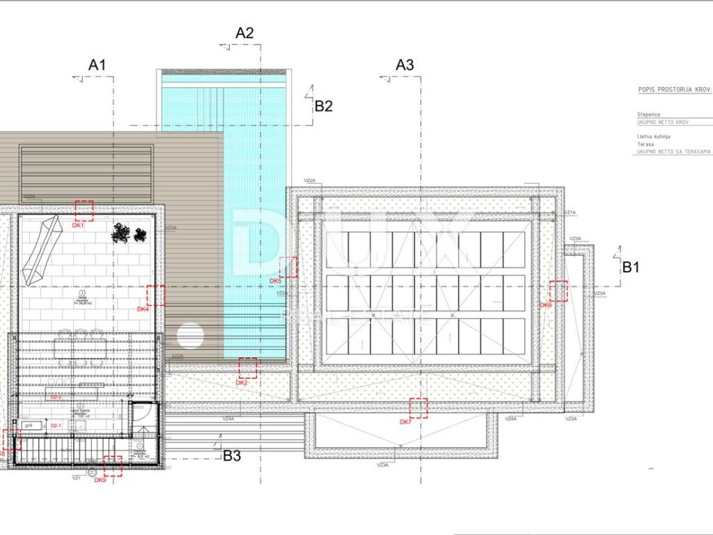 velikog bazena od 42.20m2. Na prostranoj krovnoj terasi nalazi se ljetna kuhinja te dio za blagovanje.