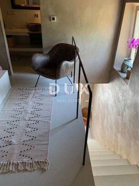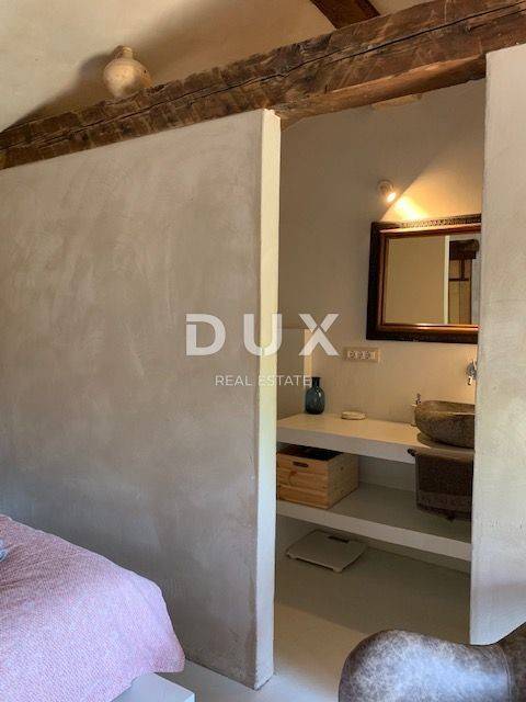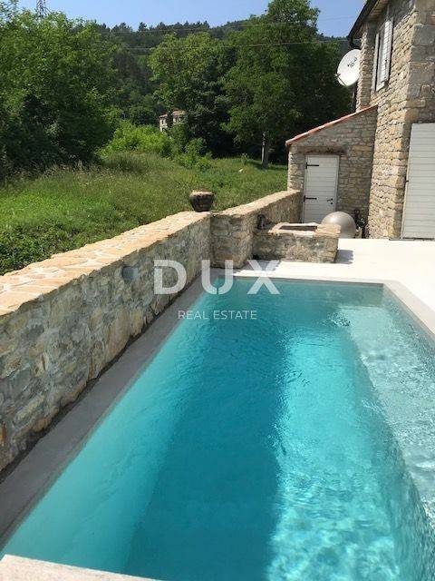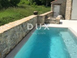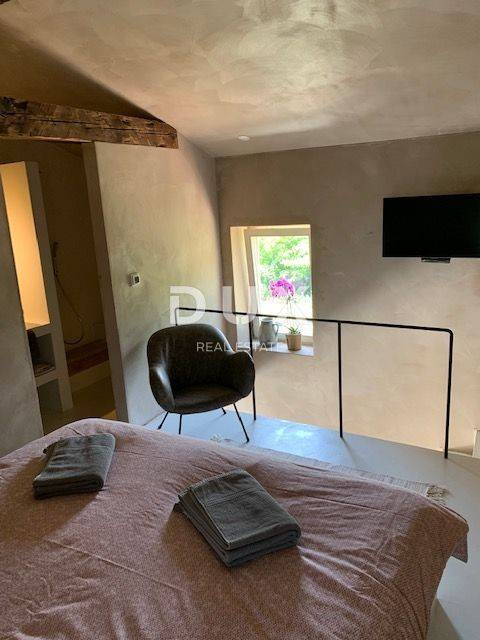 Oprtalj is an Istrian town located on a hill, which can be reached from the direction of Motovun via a narrow plateau on the south side. At one time, Oprtalj was a fortress surrounded by walls on which houses were built, among which the former city gates also spring. In front of the door is a large Venetian loggia with a lapidary, and next to it on the high ramparts is a plateau from which the view reaches all the way to the sea. The area of northern Istria is known for its numerous excellent winemakers, exceptional taverns, and exceptional natural beauty and viewpoints. This beautiful designer house with a swimming pool in a quiet location is for sale. Detached house with an area of 65 m2 extends through the ground floor and first floor. On the ground floor of the house there is a living room with a kitchen and a dining room. Internal stairs lead to the first floor where there is a bedroom and a bathroom. The house is equipped with high-quality designer furniture that gives the property a special charm. The property is heated by a fireplace, air conditioning and underfloor heating. The property offers a wonderful open view of the beautiful Istrian landscape and greenery. The living room opens onto a terrace that is ideal for enjoying and socializing, and next to the terrace there is a swimming pool with a sunbathing area. There is also an outdoor shower next to the pool. There is also a storage room next to it. The yard has a nicely arranged horticulture, and there is also a parking space within the yard. It is a house that represents a peaceful and private oasis for the owner. The property is located in a quiet location in Livade. In the vicinity of the property there are restaurants, agritourisms, wineries, promenades, shops, bicycle paths, promenades and various other facilities. Beautiful and well-kept beaches are only a 15-minute drive away. Considering the beautiful design and peaceful location, it is an ideal property for all lovers of top design and charming and peaceful Istrian places, as well as for all people seeking peace and privacy.