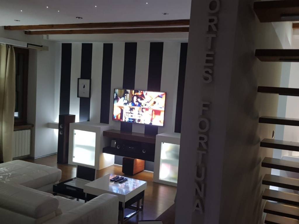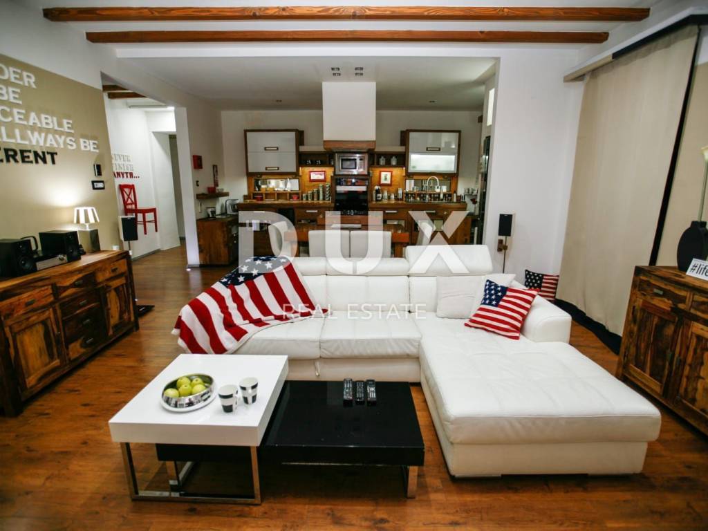 The apartment was fully renovated two years ago and is fully equipped (security door, video surveillance, PVC joinery, new electricity and water installations) and is decorated with top quality, quality furniture tailor made. It is divided into two floors, on the lower floor there is a hallway, a kitchen with a dining room, a spacious living room, a room, a large bathroom and a pantry. The upper floor is conceived as an open space with built-in wardrobes and lavish bedroom, and comes with beautiful wooden stairs. The entire space is open and allows future owners to create it according to their needs.