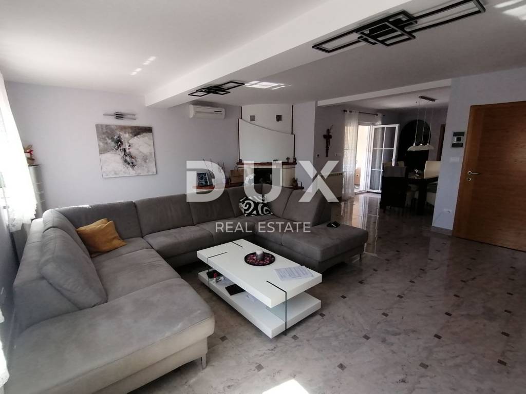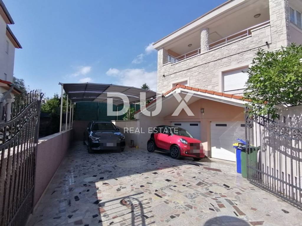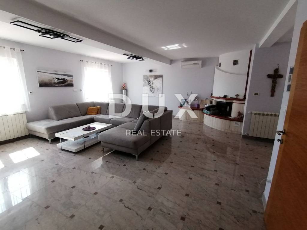 Right in Medulin, at a distance of only 200m from the sea, this beautiful family house is for sale. It extends through two floors. On the ground floor there is an entrance hall, a hall, a bedroom with a bathroom, a kitchen, a dining room and a living room, and a large terrace. We climb the internal stairs to the first floor of the house, where there is a hallway, anteroom, two spacious bedrooms, each with its own bathroom and terrace, another room, a wardrobe. In the basement there is a laundry room, a storage room, a bathroom, a boiler room, one large room and two garages. There are two more covered and two uncovered parking spaces in the garden. For heating, oil-fired central heating and underfloor heating are used, and each room is air-conditioned. Central boiler for hot water for the whole house Demit facade 8cm and stone. PVC carpentry with mosquito nets and electric blinds. The house is furnished and sold as such. An ideal investment for a peaceful family life or as an investment for tourism purposes and a guaranteed return on investment! OPPORTUNITY! Pure ownership, no encumbrances!