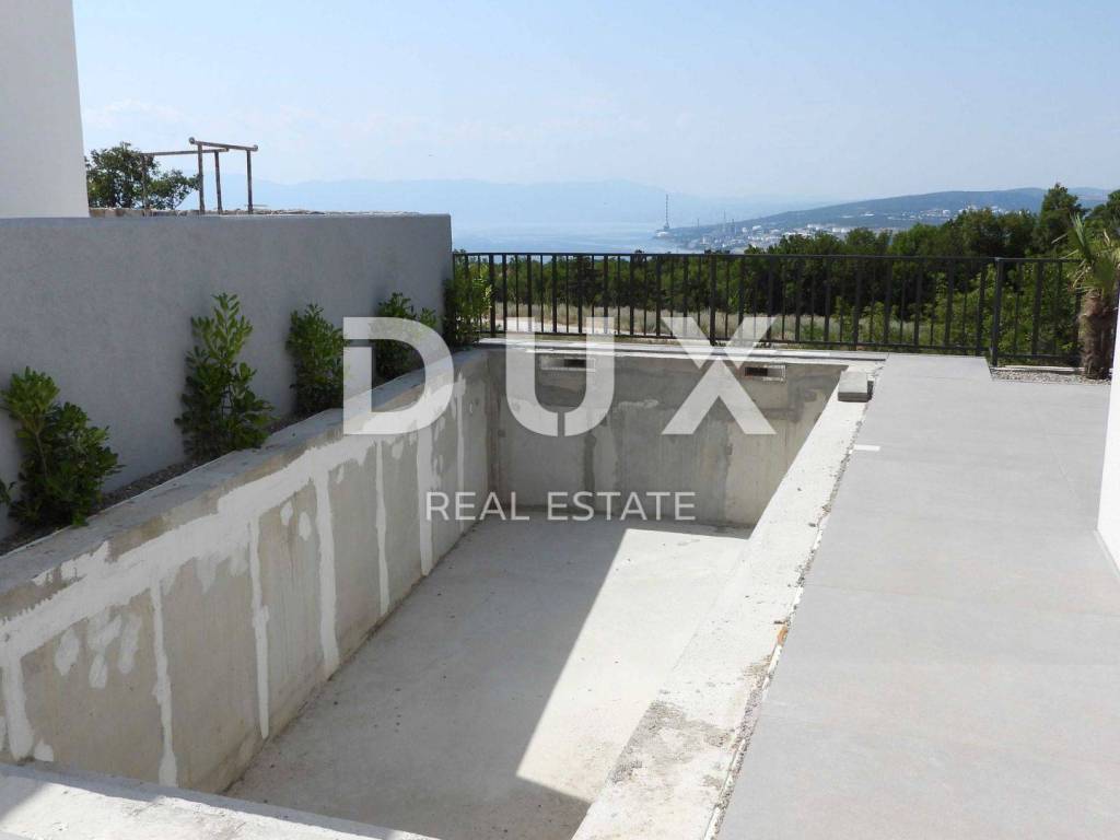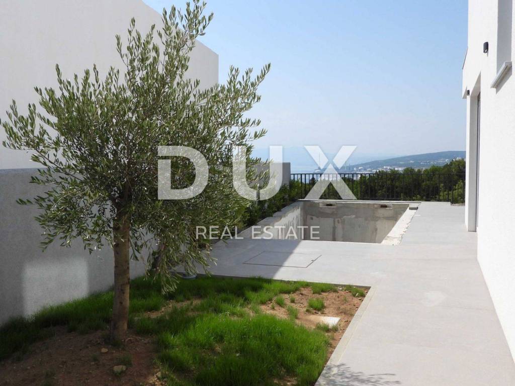 New house under construction located in a quiet cul-de-sac just below the Jadranska magistrala with a fantastic view towards the Kvarner Bay, which nothing can close with future construction because the house is located on the back line of construction sites. Construction is underway and the house is being sold complete with landscaped surroundings, outdoor portuns and fences, planted greenery, swimming pool with accompanying installation and complete interior work completed. Considering that the construction is in progress, minor changes are possible according to the agreement in the form of changes in the schedule and the selection of finishing materials for the interior decoration.