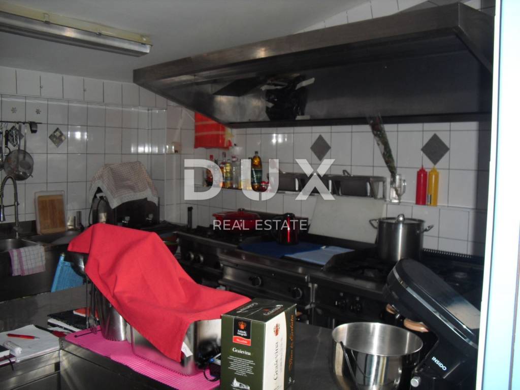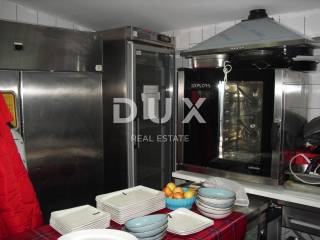 Restoran u centru Grada Krka sastoji se od dva objekta povezana natkrivenom i ostakljenom terasom na terenu od 565m2. Veća zgrada sa 85m2 tlocrtno je u naravi dvoetažni ugostiteljski objekt sa šankom, wc i prostorom za goste sa stolovima kojeg krasi lijepi kamin otvorenog tipa. Druga, manja zgrada je prizemnica sa 60m2 tlocrtno gdje se nalazi kuhinja, skladište i prostorija za osoblje sa wc. Eksterijer krasi veliki betonski roštilj i prostor koji može služiti kao otvorena terasa ili parking. Pored restorana se nalaze javne parking površine.