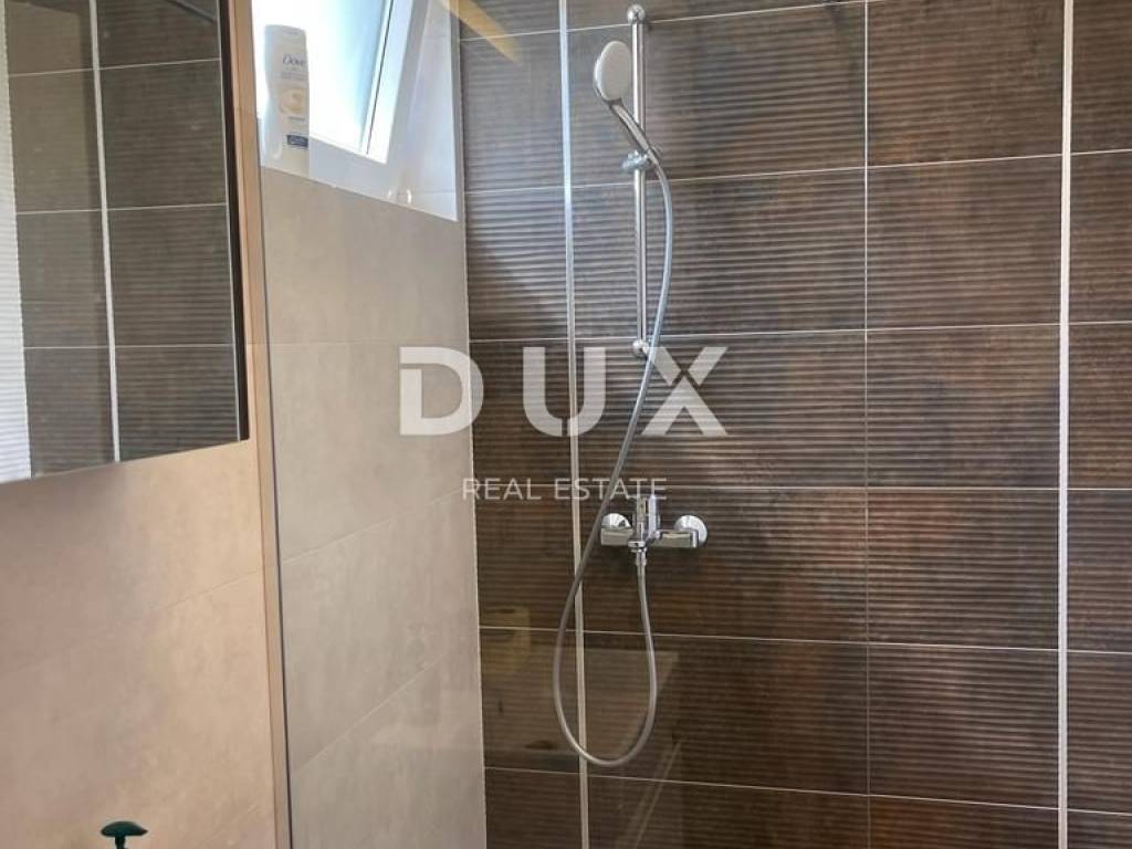 The apartment is located in a quality new building, and consists of two separate apartments, each of which has an entrance. The upper apartment of 98 m2 consists of three bedrooms with private bathrooms and toilets and a kitchen, dining room, living room and two spacious balconies. Ground floor apartment (44 m2) consists of an entrance, bedroom, bathroom, living room with kitchen and terrace. The garden is beautifully decorated with quality ceramics, barbecue and outdoor shower. A total of two parking spaces owned. The strongest asset of this facility is the location, a rarity on the market, only 300m from the sea and close to the center of Krk. The apartment is a great opportunity as a real estate for living and as an investment for rent.