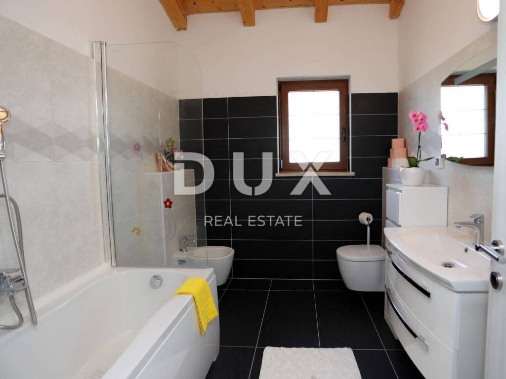 In one of the most beautiful locations in Medulin, this beautiful villa with an unobstructed view of the Medulin bay has found its place. It is located on a plot of 1050m2 while the living area of the villa is a total of 226m2 and extends to the ground floor and first floor. The ground floor has an entrance hall, living room with kitchen and dining room and exit to the terrace and sun deck, which is located next to the pool size 9x4, which also includes a hydromassage. The spacious ground floor also housed one bedroom, a bathroom, a separate toilet and a laundry room. An internal staircase leads to the first floor where there are three bedrooms, two bathrooms and two balconies with an unforgettable view. Property worth your attention!
