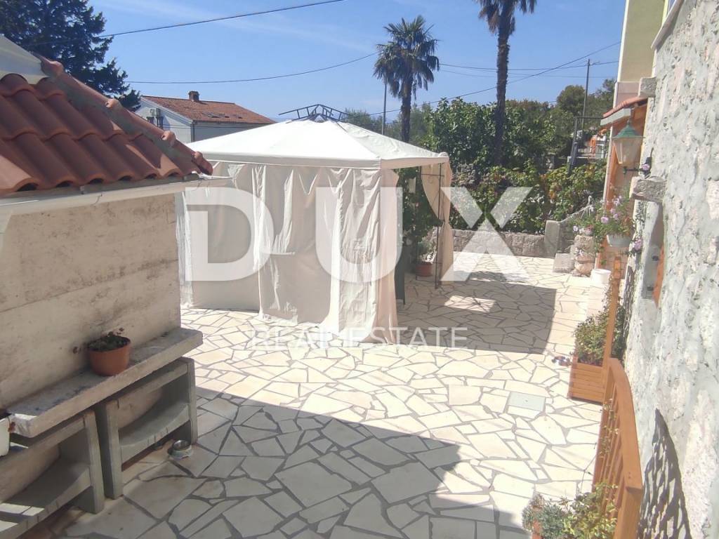 This beautiful house is located in a beautiful location by the sea with panoramic views of the sea and the island of Krk. The house is newly renovated (facade, environment, roof and interior) and consists of a cellar with kitchen, bedroom, bathroom, spacious terrace and ancillary building of 24 m2. There is also a large outdoor fireplace on the terrace. On the first floor there is one bedroom, living room with kitchen, bathroom and a covered terrace of 35 m2 with a beautiful sea view. The second floor is currently intended for tourism. In addition to an additional spacious terrace with panoramic views, on the second floor there are three studio apartments. Each floor is separate and the next is accessed by an external staircase. The garden includes a cascading garden, a terrace on the ground floor, a staircase and a parking lot for several cars. The main advantage of this property is certainly the location. A rare opportunity on the real estate market without worries about investing and with the possibility of investing through daily rent of studio apartments.
