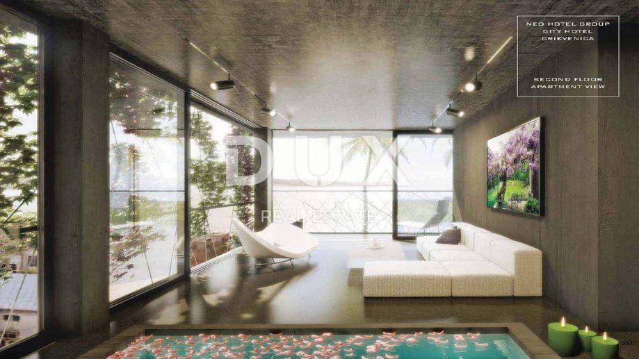 The villa consists of ground floor and four floors with beautiful sea view. The ground floor has a swimming pool, terrace, reception, lobby with fireplace, restaurant, fitness room, an elevator that connects all floors, and two parking spaces. The first floor is reserved for a bar terrace overlooking the pool, 2 two-bedroom apartments and 1 one bedroom with a balcony. The second floor consists of 2 two-bedroom apartments and 1 one-bedroom with an imposing balcony, while on the third floor there are 2 two-bedroom apartments and a smaller balcony. The fourth floor is reserved for the terrace and a bar with a place for breakfast-dinner.