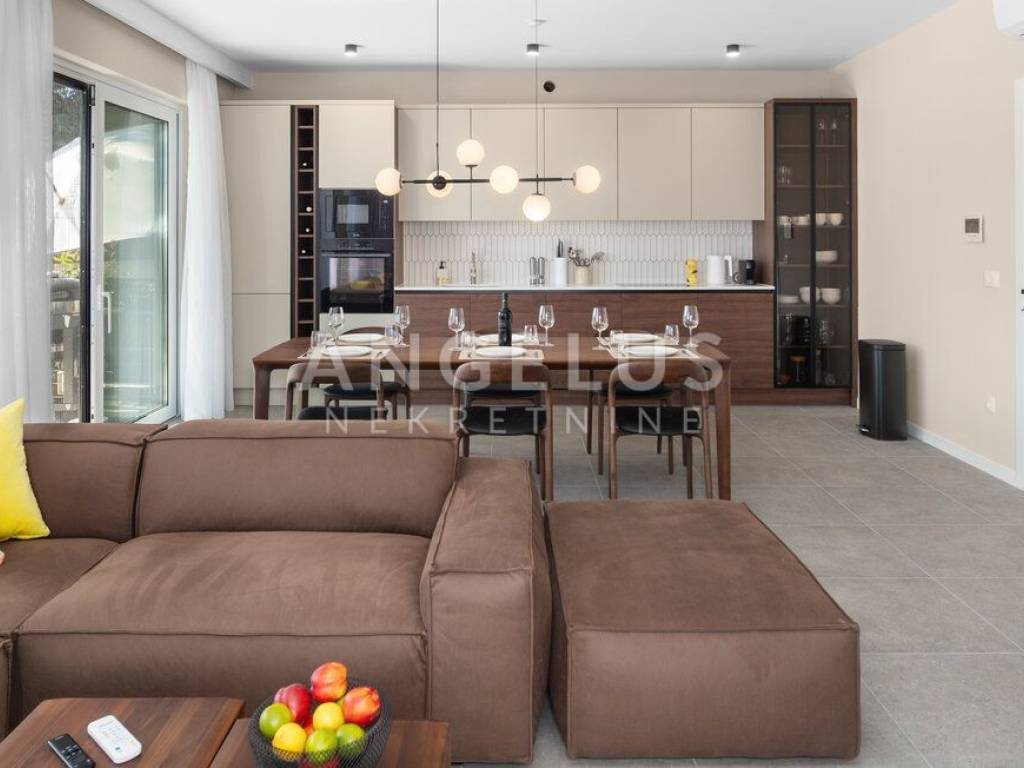 DESCRIPTION: The apartment is fully furnished and designed following the current ambiente trend, this apartment is ideal for living and relaxing. Pleasant, comfortable and cozy, all three characteristics give this accommodation unit the opportunity to feel at home. The apartment is offered for long-term rental for a minimum of one year or more. It is located in a building where there are only 3 other similar apartments. The apartment consists of a living room, kitchen and dining room on the ground floor, and one bedroom with a bathroom and a guest toilet. On the first floor there are two more bedrooms with bathrooms and a large terrace with a sea view.