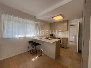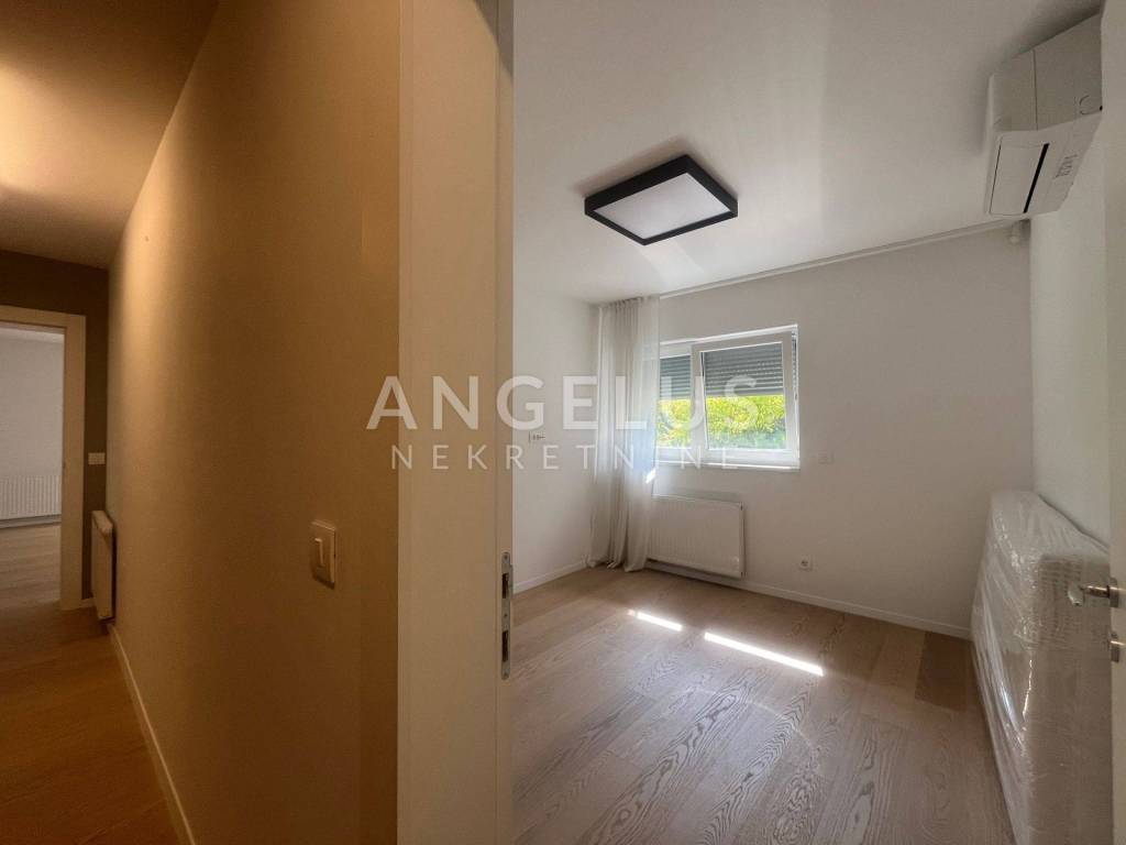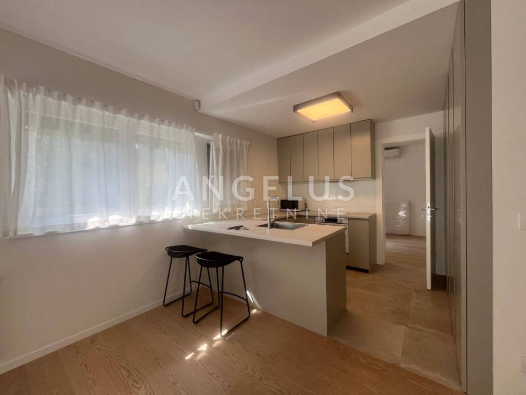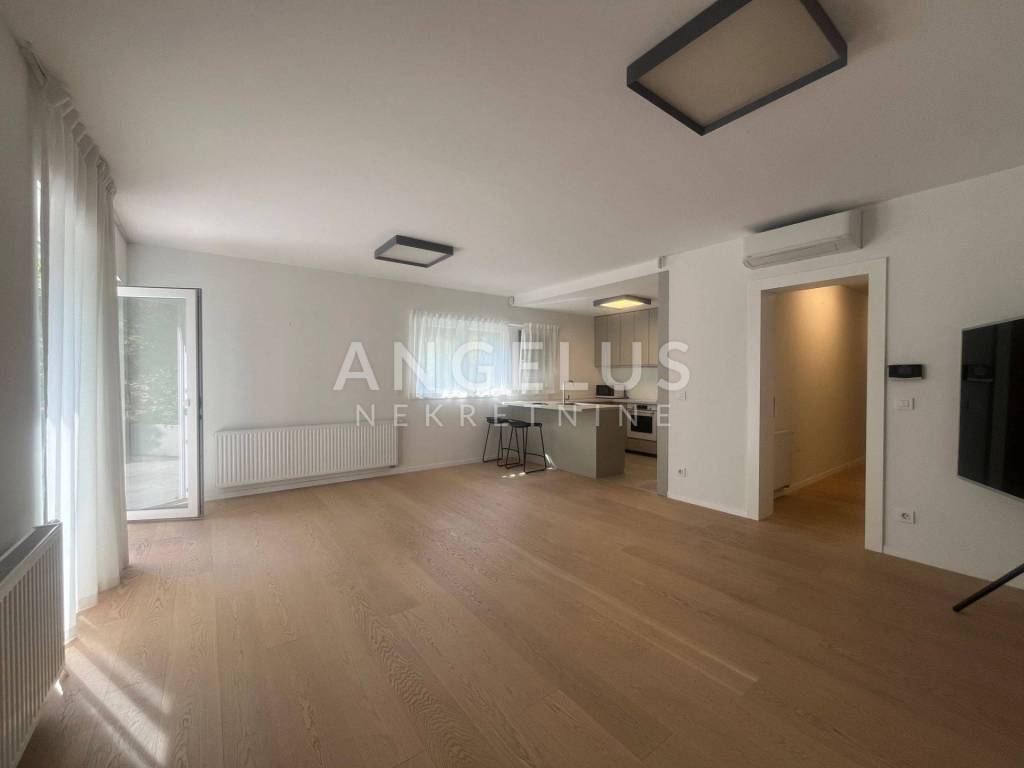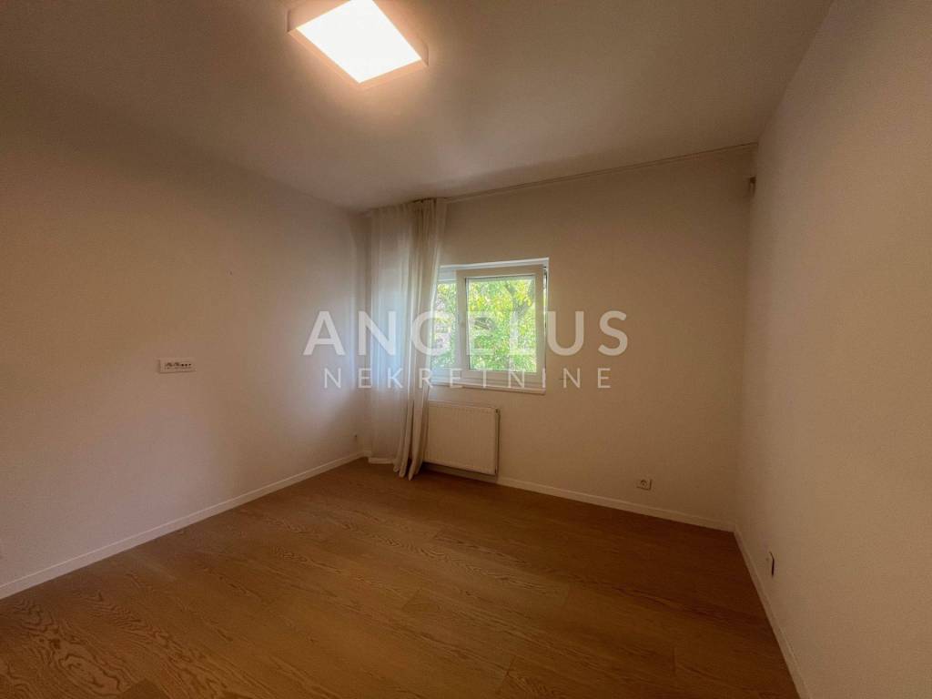 It is situated on the ground floor and first floor of the newer, high-quality building. The first floor consists of: entrance hall, bedroom, bathroom, kitchen connected to the living room and dining room and access to the terrace and shared garden, and the second of: 3 bedrooms, cloakroom and two bathrooms. It is air-conditioned, gas central heating, direct elevator access to the apartment through both levels. It is unfurnished (except the kitchen and built-in wardrobes), furniture upon arrangement. It has storage and 2 parking spaces in the garage with chargers for electric vehicles, and if necessary, it is possible to rent a third one.
