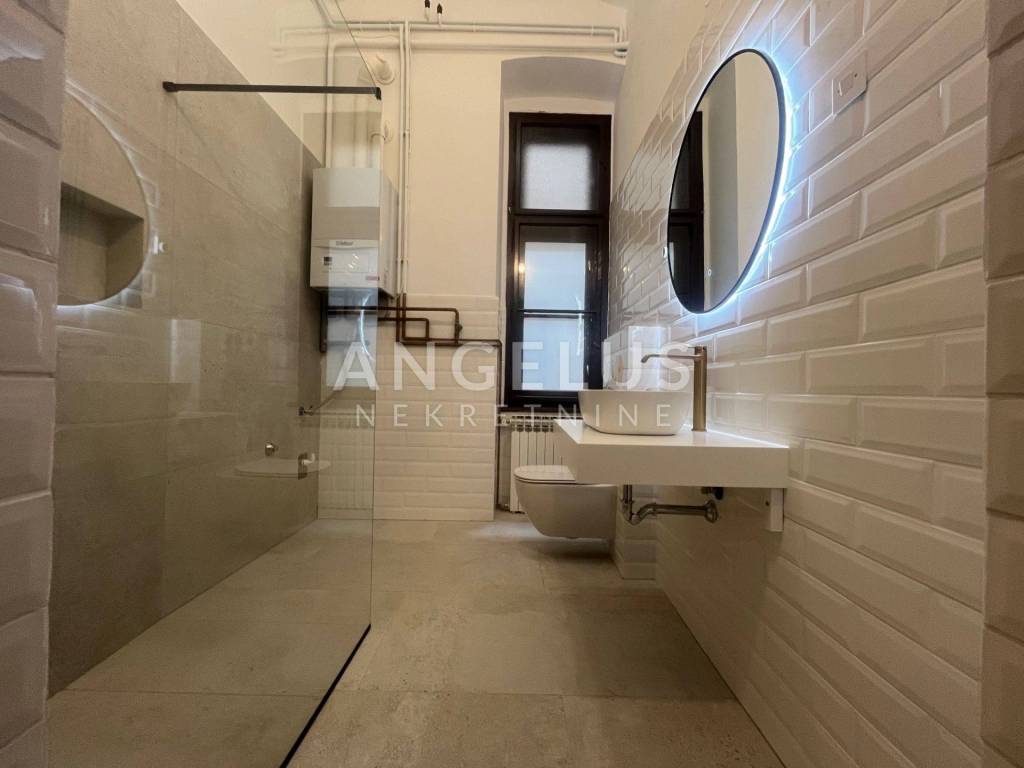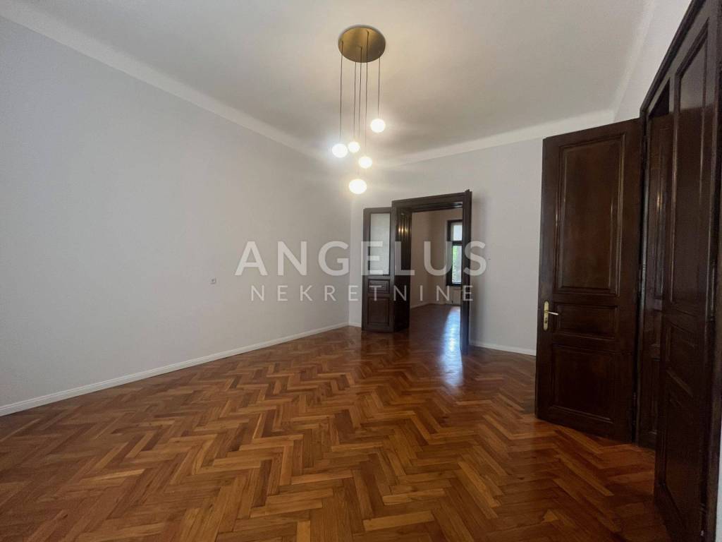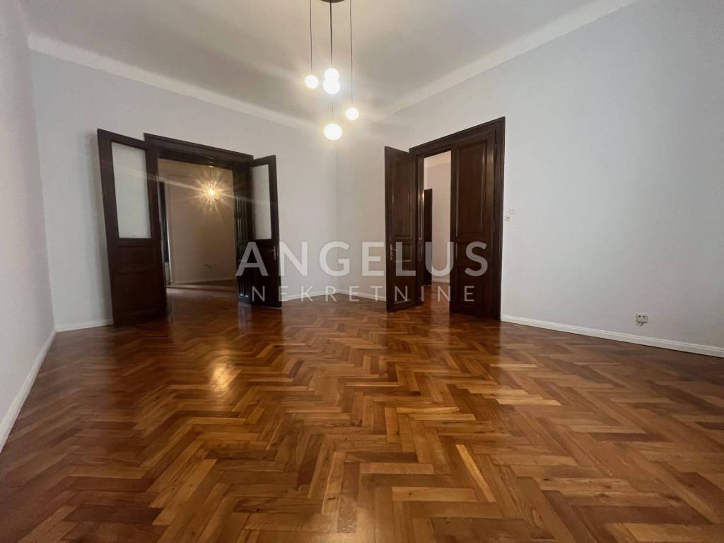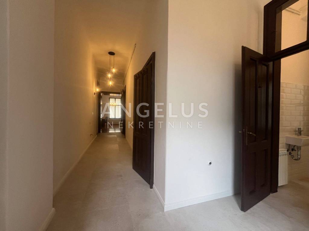 It is located on the upper ground floor of the building with the newly renovated representative hall, and consists of : entrance hall, 3 rooms, kitchen, storage, maid's room, small balcony, bathroom with toilet and additional guest toilet. Gas central heating.