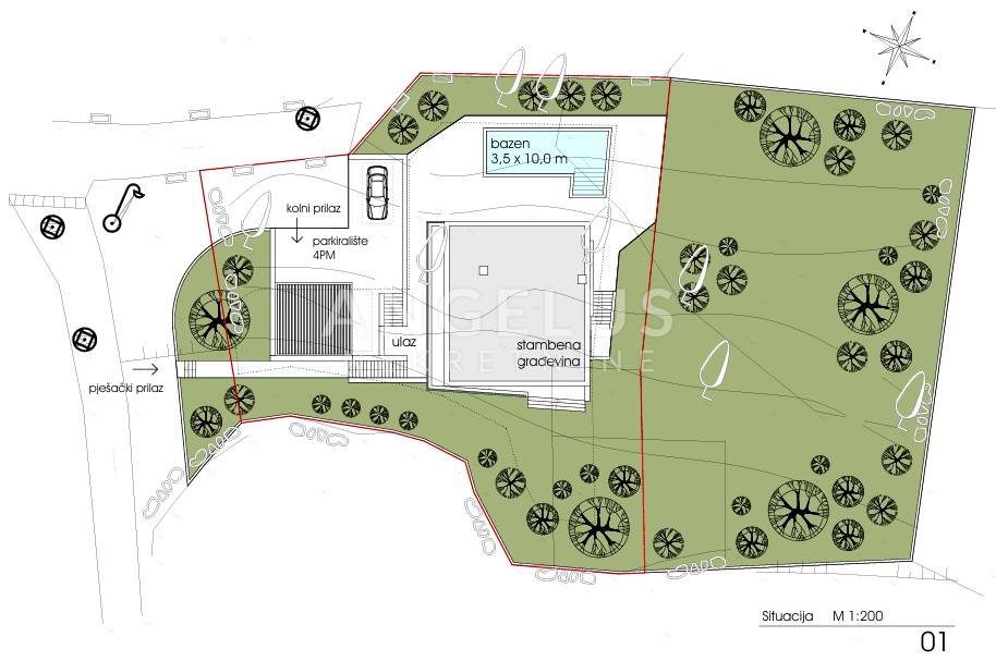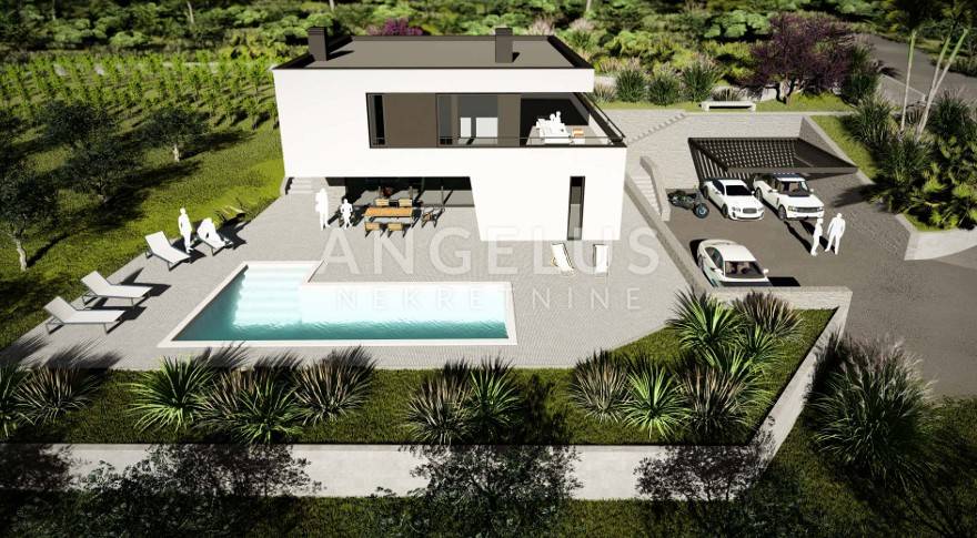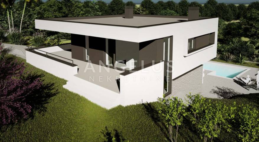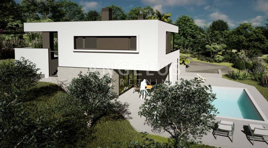 Angelus nekretnine Vam nude ovo atraktivno zemljište s pravomoćnom građevinskom dozvolom za izgradnju prostrane vile s bazenom.