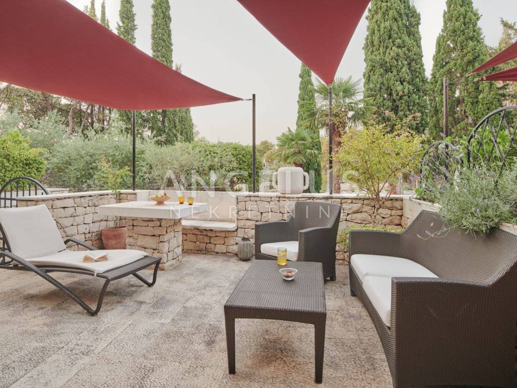 This unique property in the first row to the sea is primarily designed as an oasis for relaxation and enjoyment, offering maximum comfort and elegance at the highest level, especially in the segment of guest privacy, while the special charm of the villa is the spacious courtyard with an outdoor pool and living room and dining room furniture, which is full of citrus fruits and various Mediterranean plants, further emphasizing the Mediterranean oasis in which the villa is located.