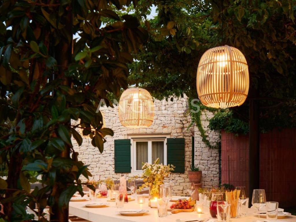 A beautiful stone villa with a swimming pool is for sale, located in a paradise part of a coastal town on the island of Brač, only 5 m from the sea, surrounded by a perfect combination of beautiful landscapes, untouched nature and beautiful beaches. Brač, as the largest central Dalmatian island, belongs to the sunniest Adriatic region. Bordered by magical bays and covered with pine and cypress forests, it is one of the most beautiful Croatian islands. Due to its attractive geographical position, rich cultural, tourist and gastronomic content, beautiful bays and beaches, and relaxed lifestyle, Brač is known as one of the most desirable destinations for living and vacationing in Croatia. Brač is very well connected to the mainland by daily ferry lines, and is one of the few islands in the Adriatic that has its own airport, which connects it to many European cities.