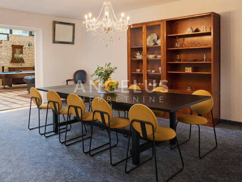 The villa is elegantly equipped and furnished, where during construction all the necessary privacy and comfort were taken into account, as evidenced by the detailed planning and execution of the interior and garden. The total net area of the villa is 513 m2, while the total usable area of the villa is 714 m2 and extends over two floors. The villa currently consists of 7 bedrooms with en-suite bathrooms, which are interconnected by a shared internal hallway, a spacious living room, a dining room and a modern professional kitchen. The current concept of the villa is designed as a Villa for rent that can accommodate a maximum of 12 guests. The original idea of the villa was conceived as an Apart hotel with 11 rooms, which could accommodate 22 guests. The property operated as an Apart hotel for more than 15 years, before the current owner converted it into a Villa for rent, in 2023 to be exact. If the future owner wants to return the property to its original condition, this can be done without major investments. In front of the villa is a large swimming pool and a spacious sunbathing area, and in the back of the villa there is a summer kitchen and an outdoor lounge, a space for Wellness and Fitness, an outdoor Jacuzzi, a home cinema, and private parking for six cars. Guests of the villa also have access to private cabanas located in a pine forest near the sandy beach, where guests have complete privacy, enjoying a peaceful oasis of untouched nature and sea views.