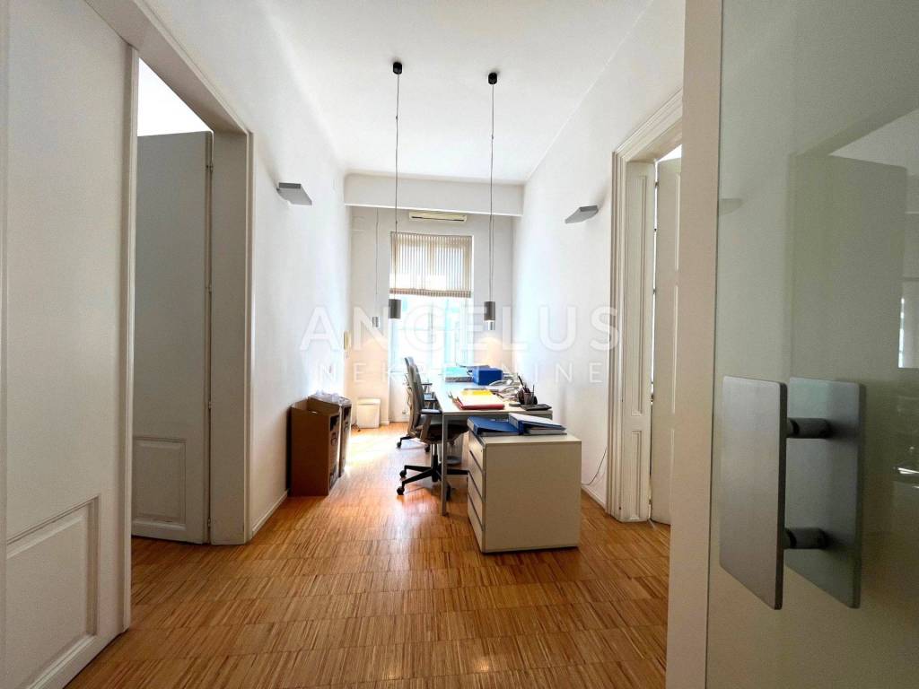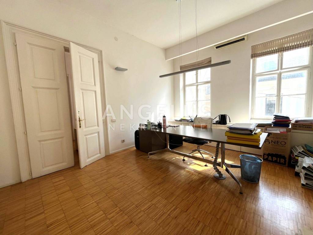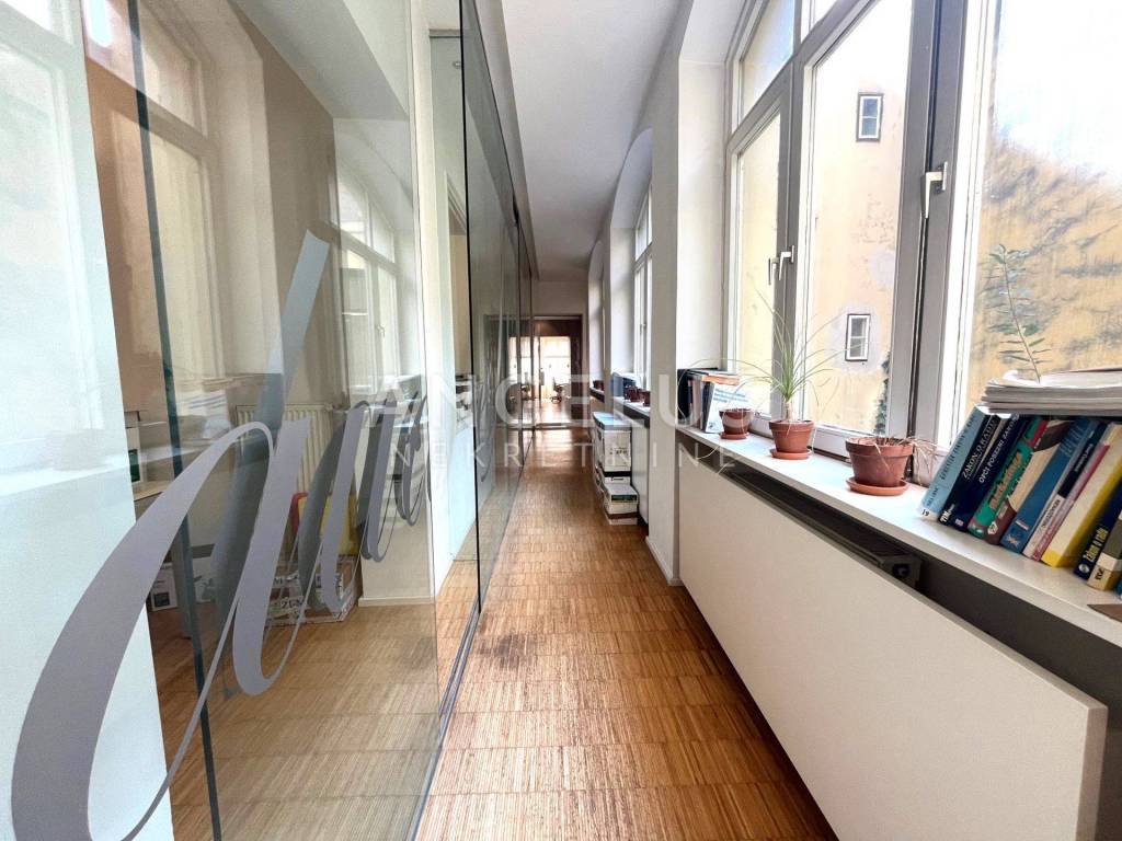 DESCRIPTION: The apartment is located in a building with only two office spaces. It consists of an entrance hall, three rooms facing the street and one separated by a glass wal land another 3 rooms/offices, facing the garden side. There is also men's/women's toilet, a separate shower and a kitchen.