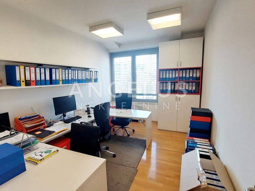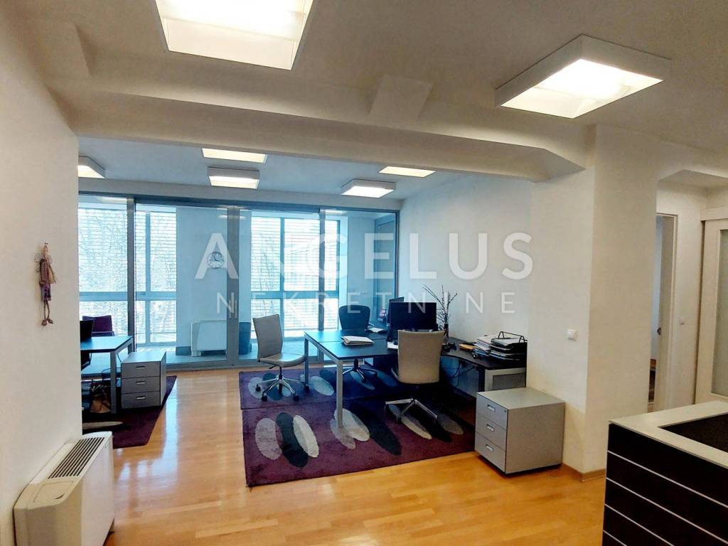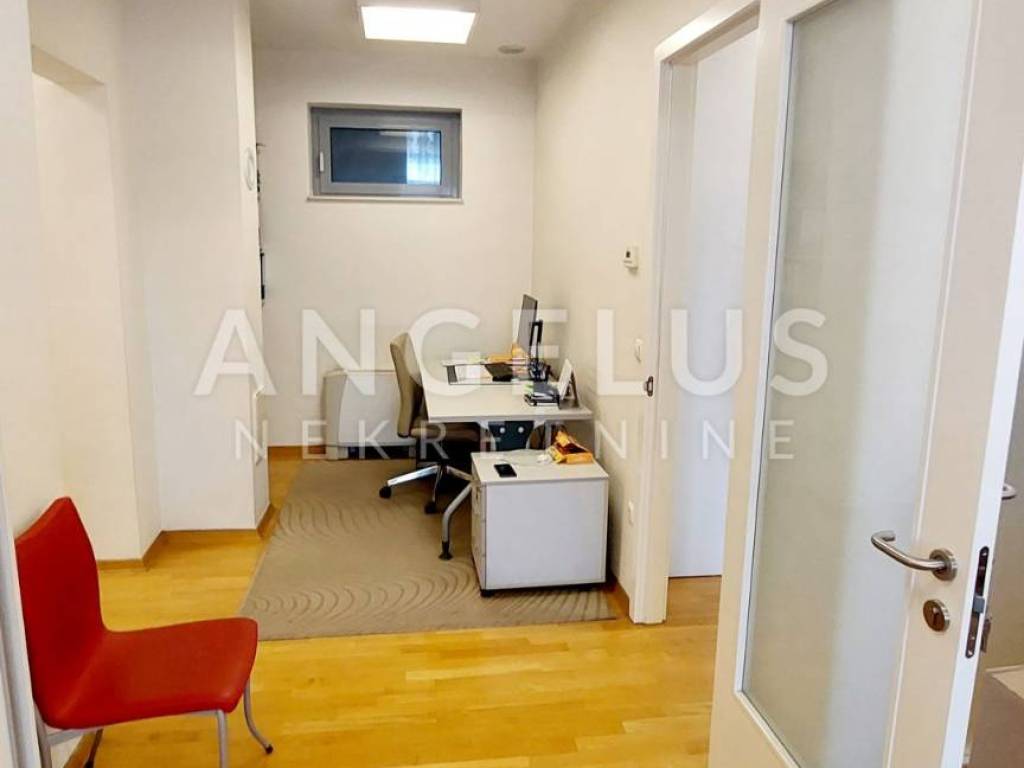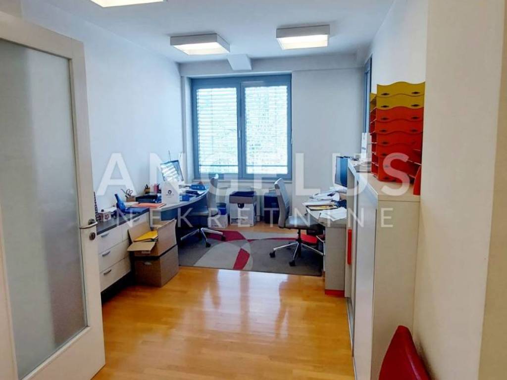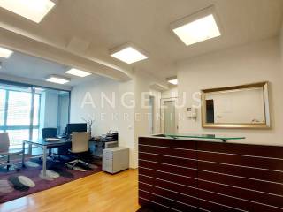 Poslovni prostor sastoji se od dvije spojene jedinice, time ima i dva ulaza. Centralni prostor sastoji se od ulaznog halla s mjestom za recepciju / sekretaricu te većeg radnog prostora s tri stola koji gleda na loggiu. Hodnikom se ide do još dva odvojena prostora s radnim stolovima. Prostor ima i široku, ukusno uređenu sobu za sastanke i odlično opremljenu, odvojenu kuhinju s izlazom na natkrivenu terasu, te dva velika kupatila.