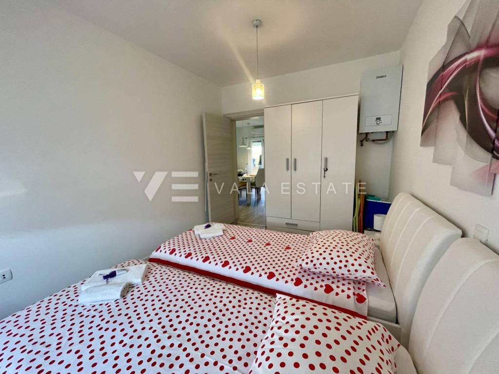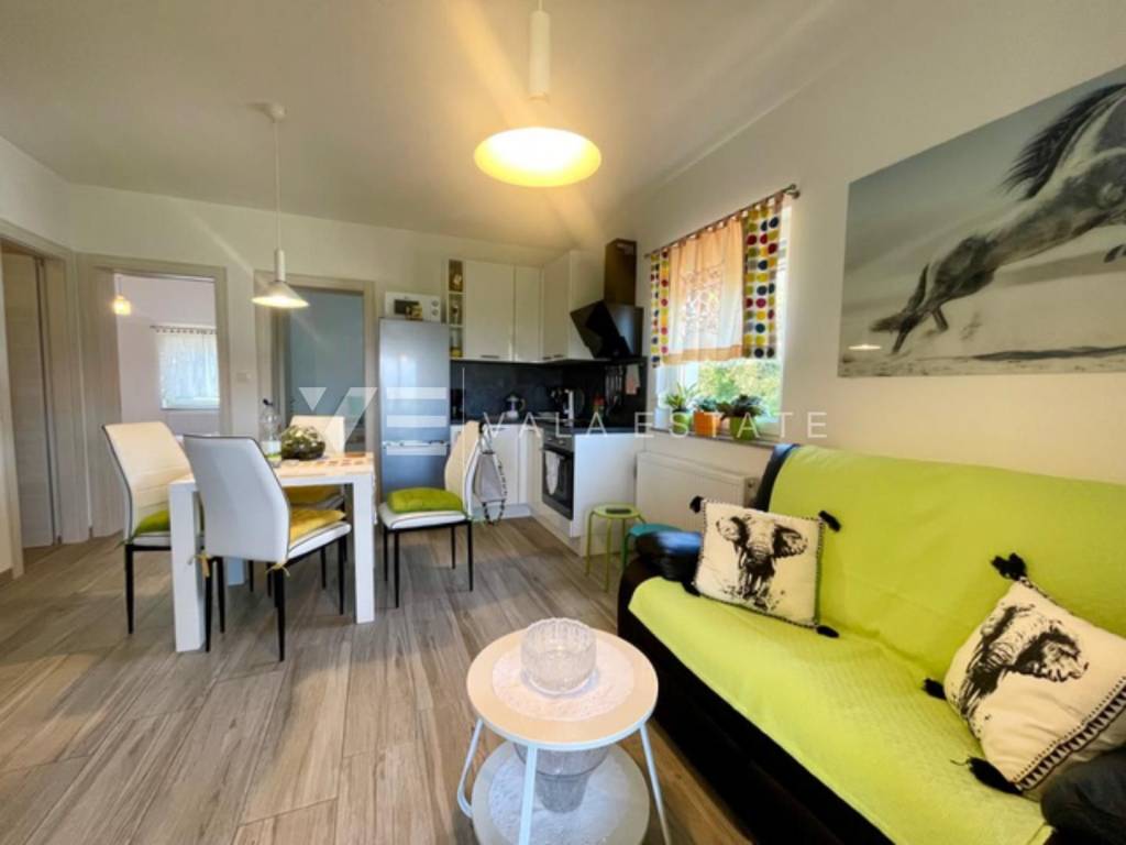 Real estate on the island of Krk, Dobrinj area - for sale is a furnished apartment on the second floor of a family house with a beautiful view of the surrounding nature. The total living area of the apartment is 47 m2 and is divided into an entrance area, bathroom, two bedrooms, living room with kitchen and dining room with access to a loggia. It has one parking space in the common courtyard of the building. The apartment is fully equipped, of high-quality construction and equipment, is sold fully furnished, air-conditioned, has PVC joinery, electric central heating, proper documentation and is ready to move in. It is located in a quiet location, 2200 m from the beach and the town center with all necessary amenities. Due to its location, it is an excellent opportunity for personal use or for tourist rental.