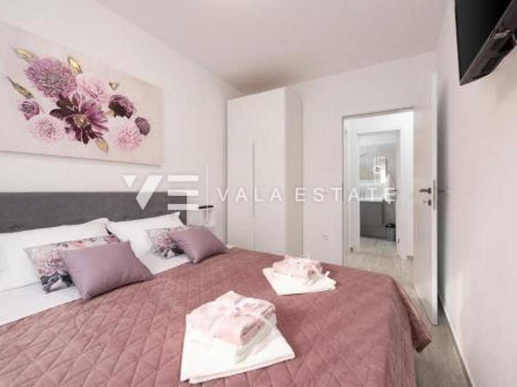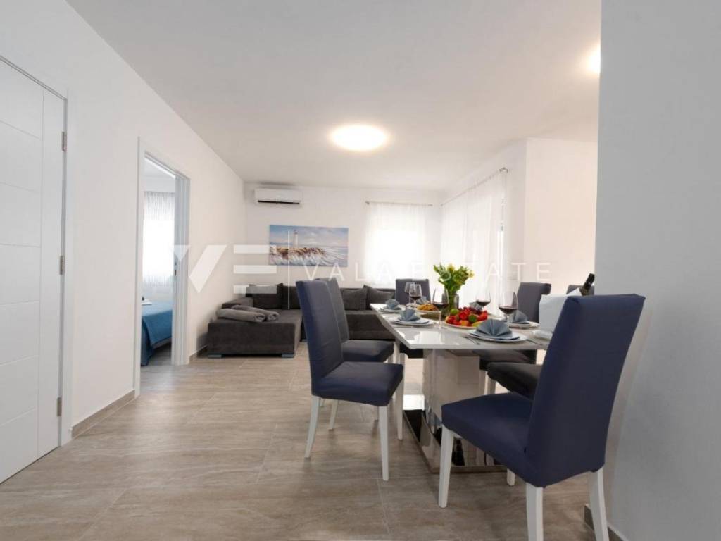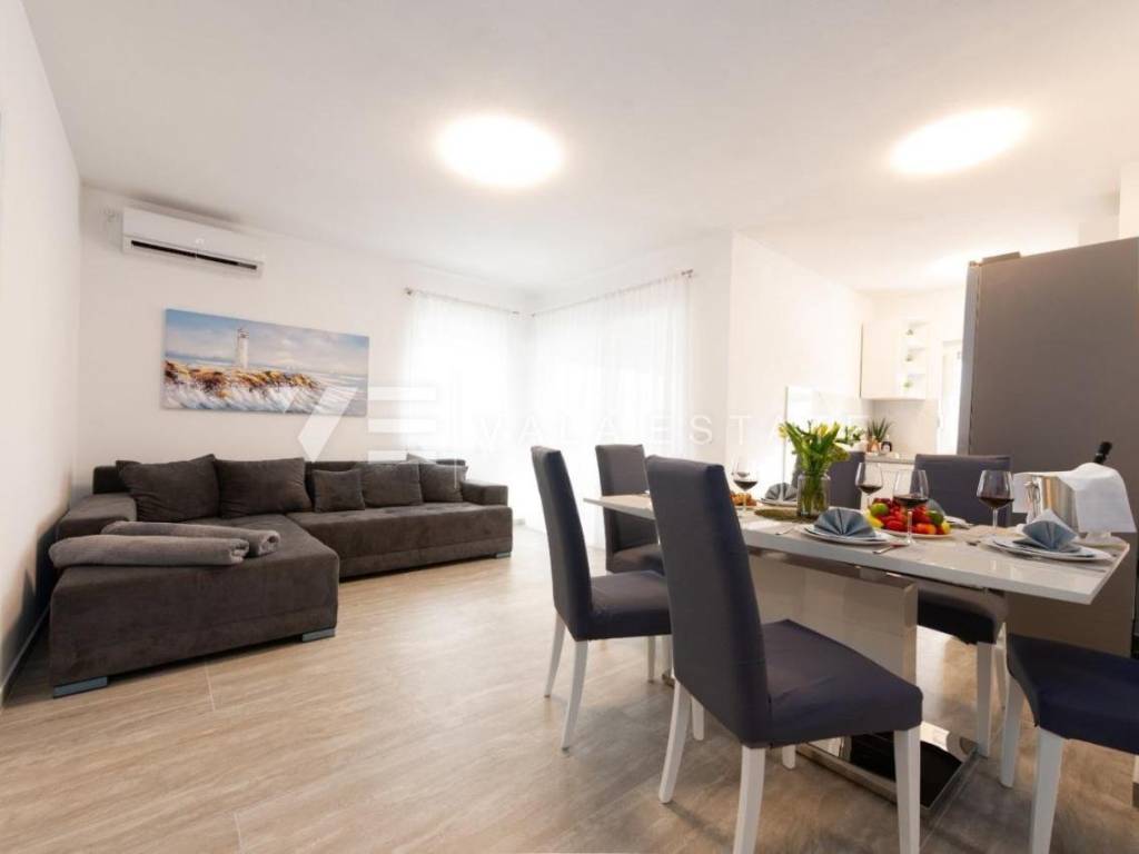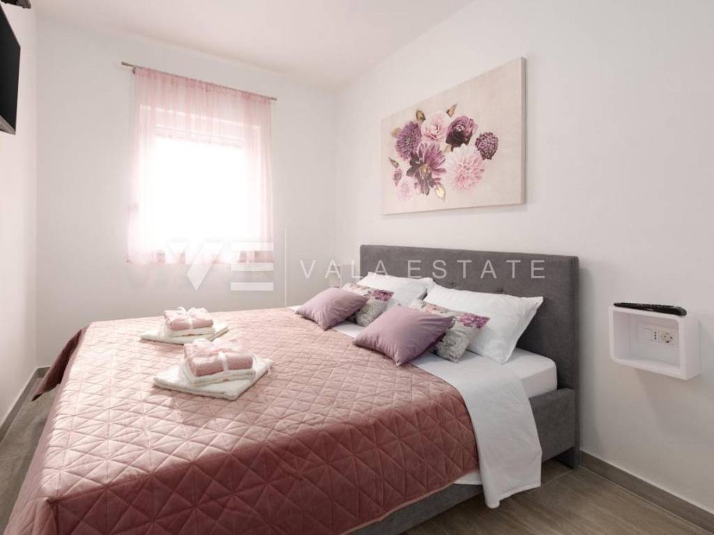 Real estate island of Krk, Soline bay - for sale is a newer apartment with a total living area of 70 m2 located on the first floor of a family house. It consists of an entrance hall, bathroom, toilet, three bedrooms, kitchen, dining room and living room with access to a covered terrace with a sea view. The apartment is comfortable and very well laid out, it is sold fully furnished and equipped, it is air-conditioned, has quality PVC joinery with built-in mosquito nets, neat documentation and is ready to use. It has one parking space in the shared courtyard of the house. It is located in a quiet location only 500 m from the sea and beautiful beaches. It is an excellent opportunity for your own use or for tourist rental. The Vala Estate Malinska agency will enable you to transfer ownership and all necessary documentation safely and transparently.