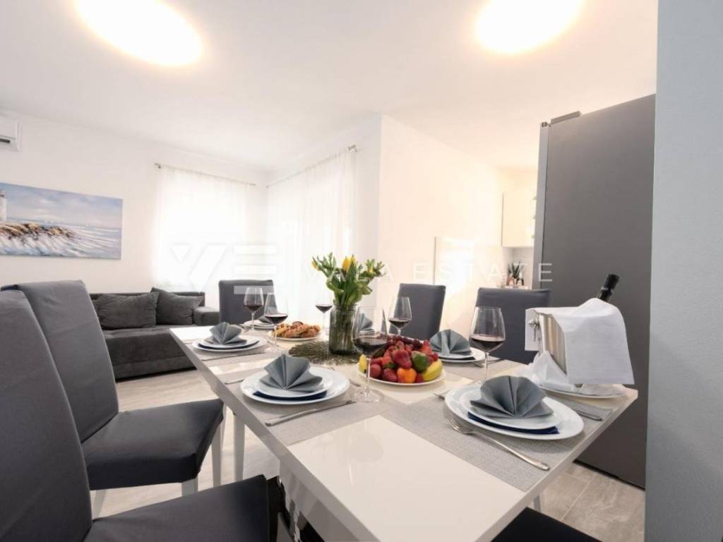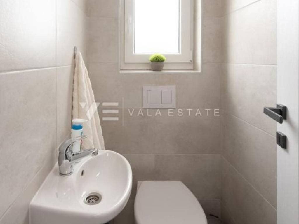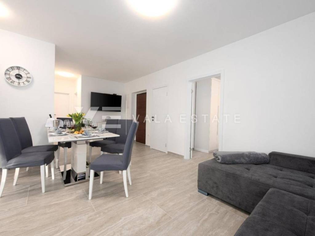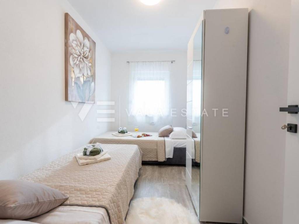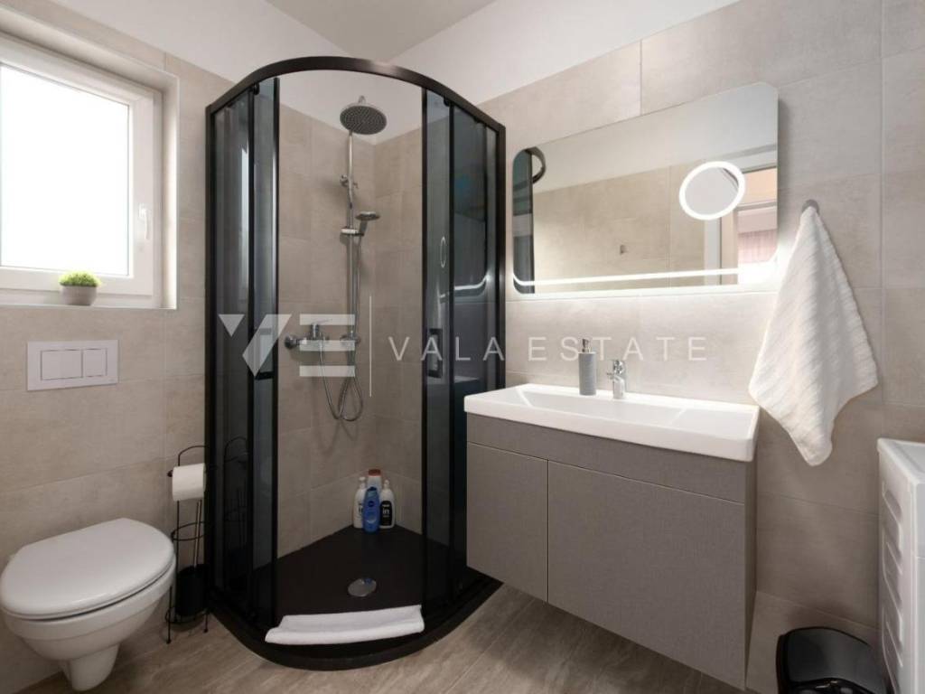 Real estate island of Krk, Soline bay - for sale is a newer apartment with a total living area of 70 m2 located on the first floor of a family house. It consists of an entrance hall, bathroom, toilet, three bedrooms, kitchen, dining room and living room with access to a covered terrace with a sea view. The apartment is comfortable and very well laid out, it is sold fully furnished and equipped, it is air-conditioned, has quality PVC joinery with built-in mosquito nets, neat documentation and is ready to use. It has one parking space in the shared courtyard of the house. It is located in a quiet location only 500 m from the sea and beautiful beaches. It is an excellent opportunity for your own use or for tourist rental. The Vala Estate Malinska agency will enable you to transfer ownership and all necessary documentation safely and transparently.