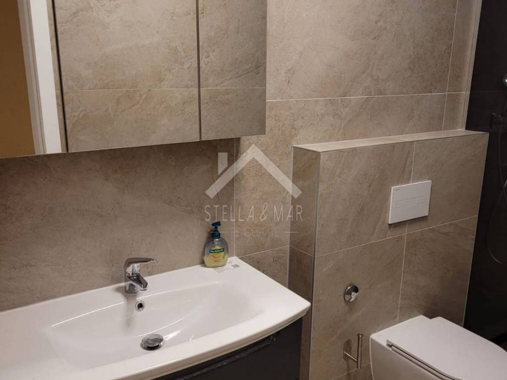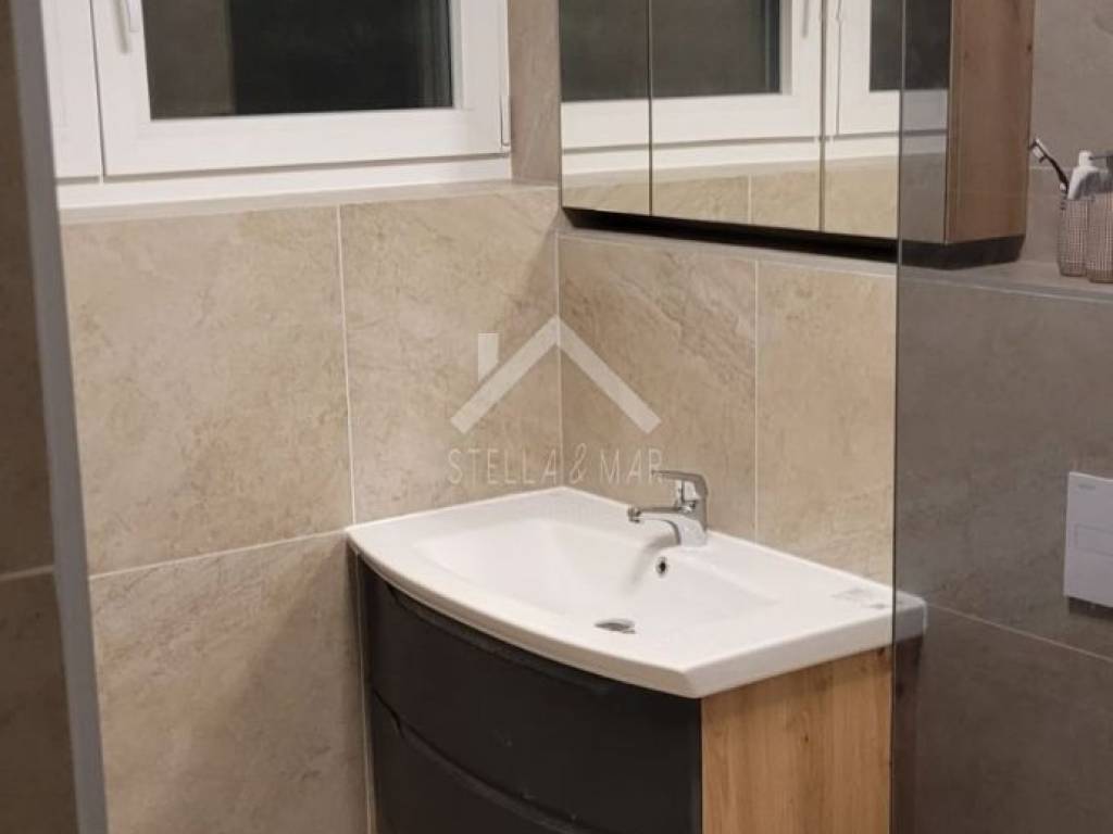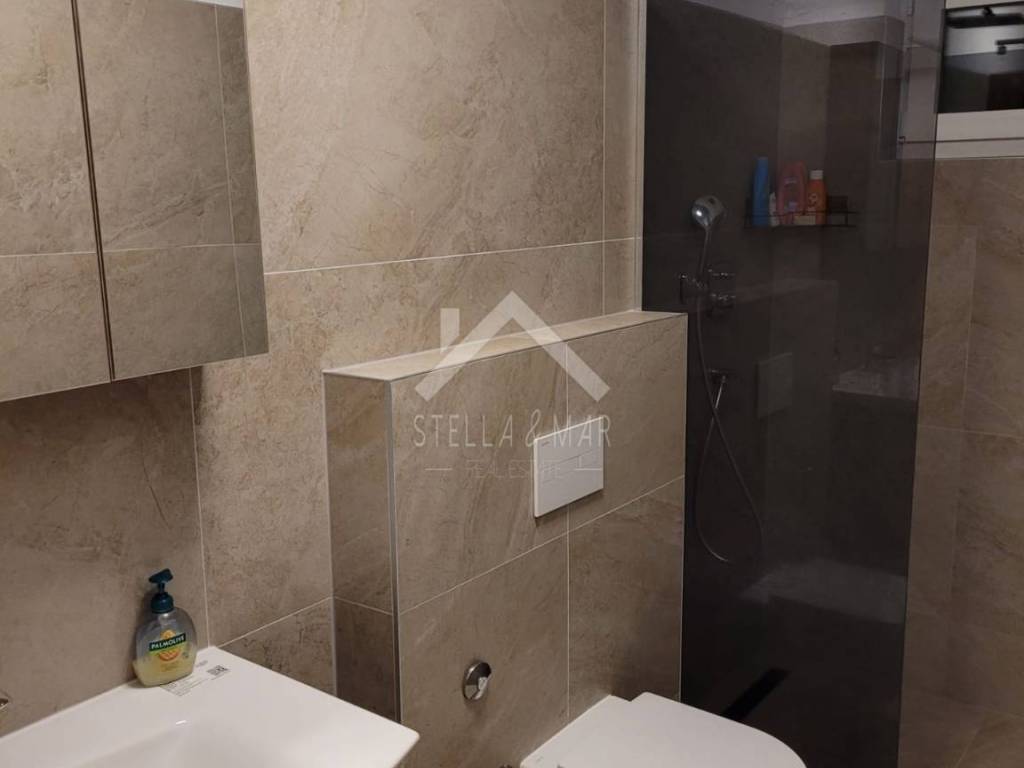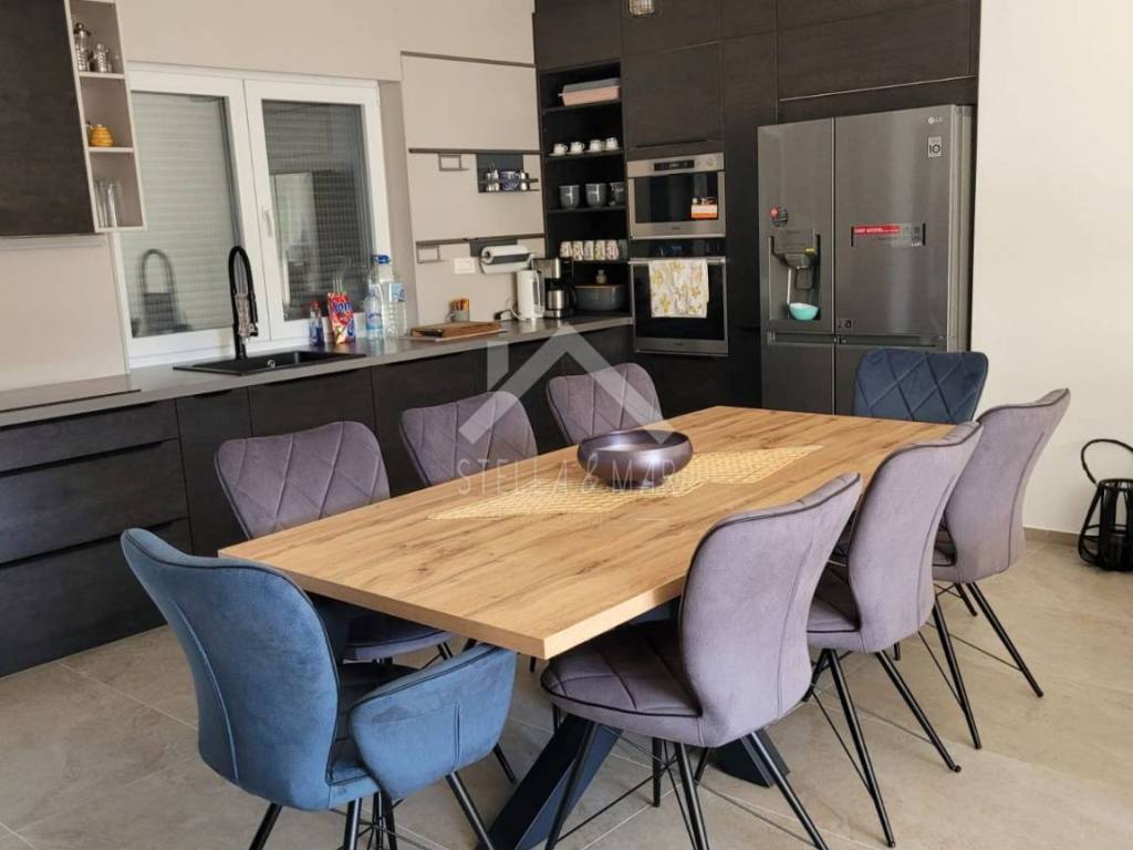 On the ground floor there is a spacious living room with kitchen and dining area, toilet and engine room. From the living room there is access to the terrace, where there is a heated swimming pool with its own heat pump.