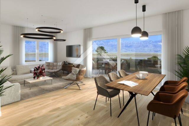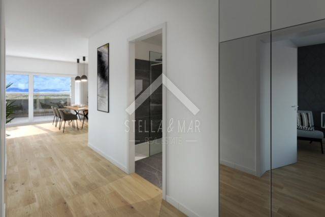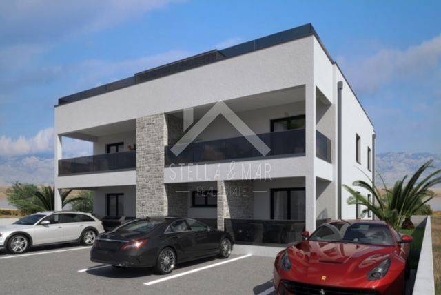 An apartment for sale in a new building near the sea on the island of Vir. It is located on the ground floor of a smaller residential building. The property was built to a very high standard, according to the highest construction standards. The apartment is ideal for a peaceful and relaxing vacation. Also, an excellent investment for a tourist rental. The comfortable terrace offers a wonderful view of the sea.