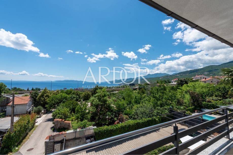 In a quiet and prestigious part of Matulji, in an ideal location that connects the vicinity of Opatija and the Rijeka Ring, an extremely attractive apartment of 100 m is for sale, which delights with the quality of workmanship, comfort and the atmosphere of a real family home. It is located on the second floor of a newer building, and thanks to its elevated position, it offers an impressive panoramic view of the entire Kvarner, from Rijeka to the islands of Krk and Cres.
