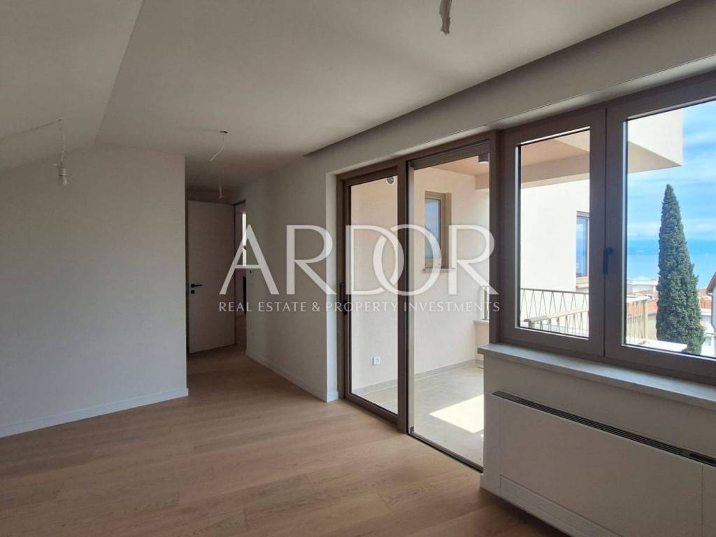 Located in an exceptional location, just 70 meters from the sea and the main city square Slatina, this luxurious two-story penthouse with panoramic views of the Kvarner Bay is for sale.