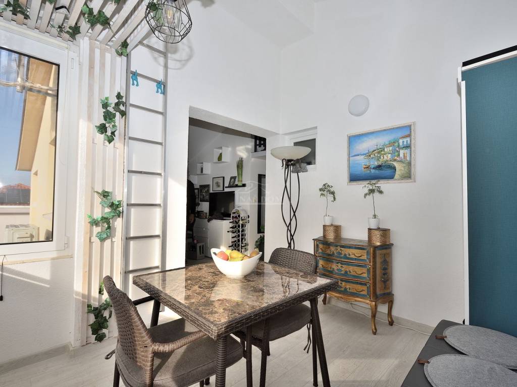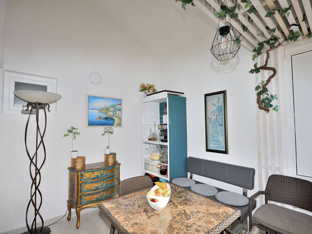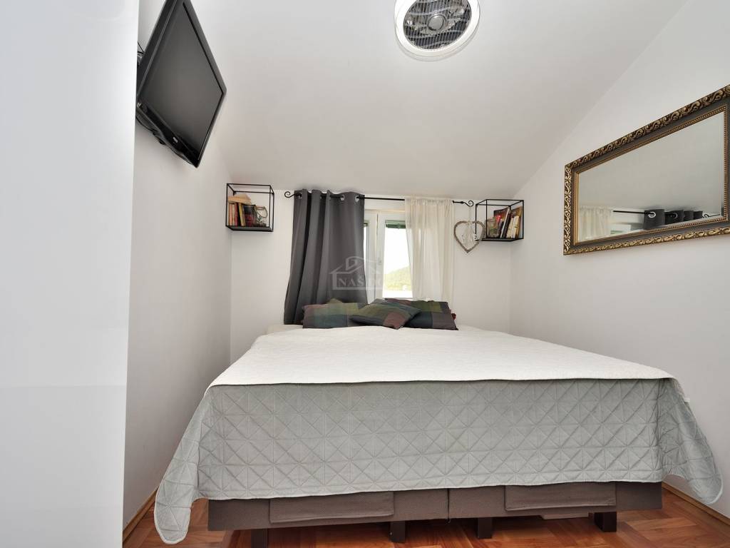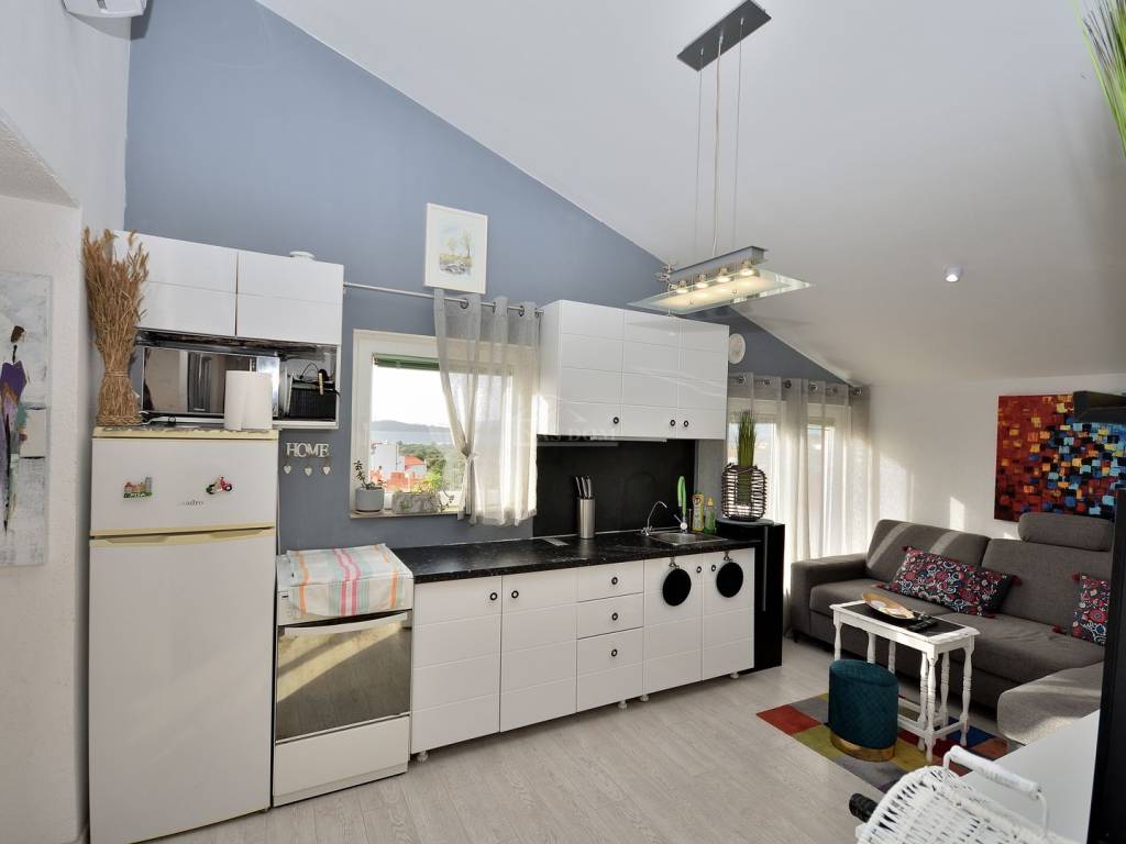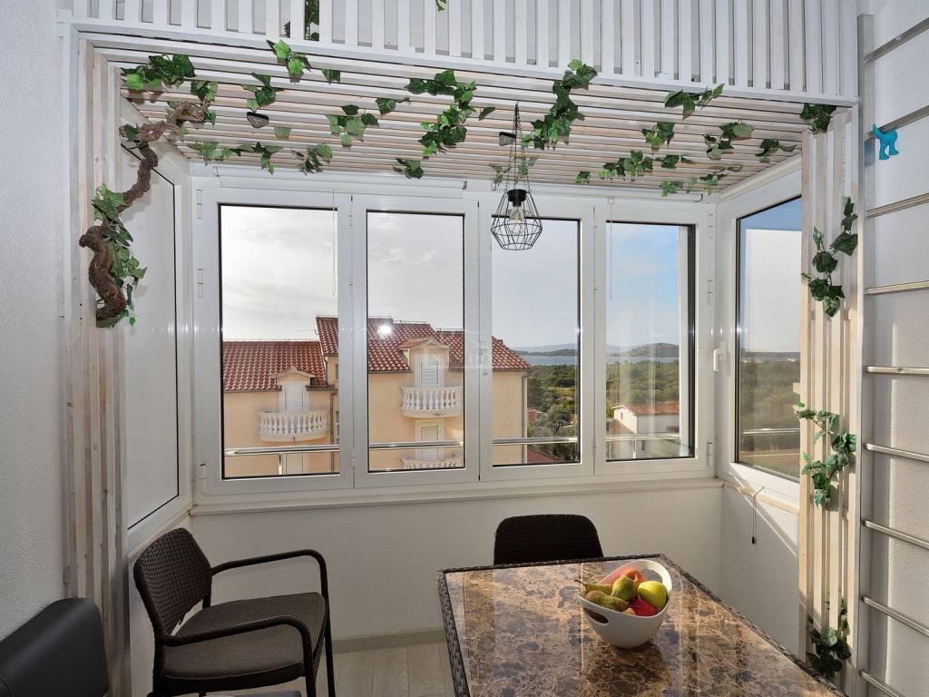Vodice – for sale an apartment with a sea view near the beach. The apartment is located on the second floor / high attic of a residential building with a total of 9 residential units. It has a total net living area of 35.74 m2 and consists of a hallway, bedroom, kitchen with dining area, living room, and a loggia that is fully glazed with the possibility of opening windows. The apartment includes a storage room of 5 m2 in the building's basement and one parking space in front of the building. The building is located in a quiet area, approximately 450 m from the beach and about 1200 m from the center of Vodice. The apartment is air-conditioned (new 3.5 kW air conditioner) and furnished.