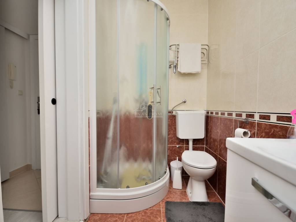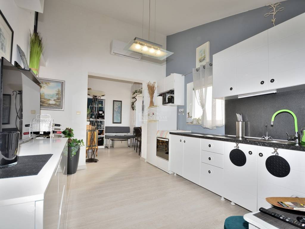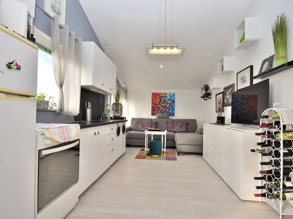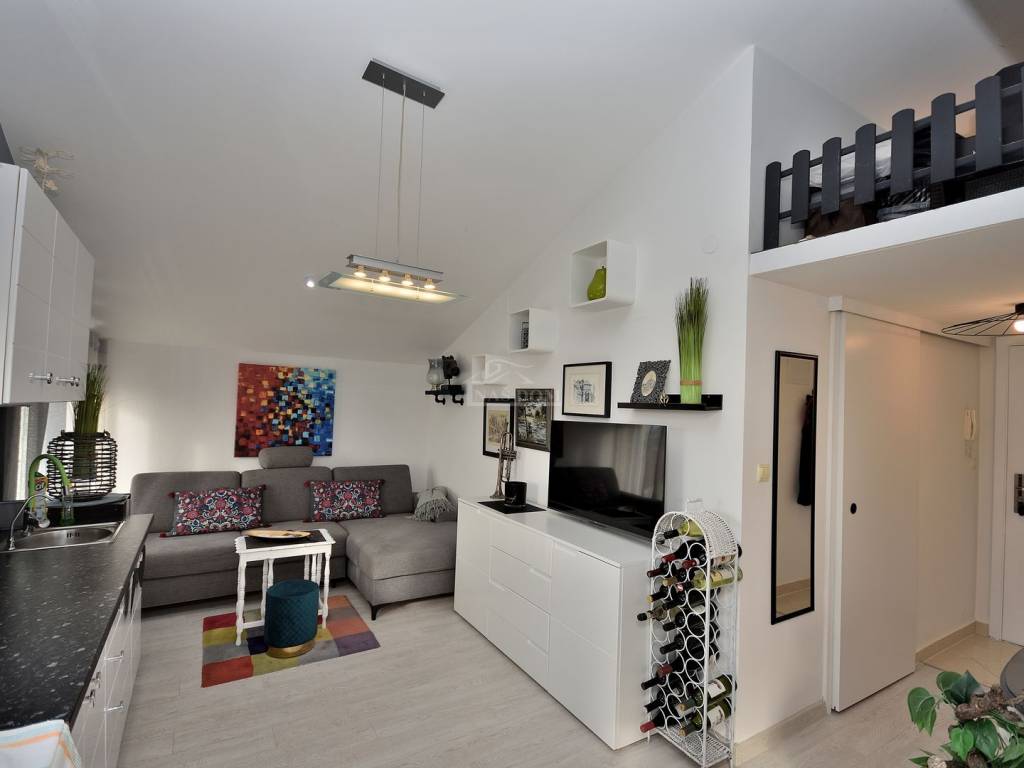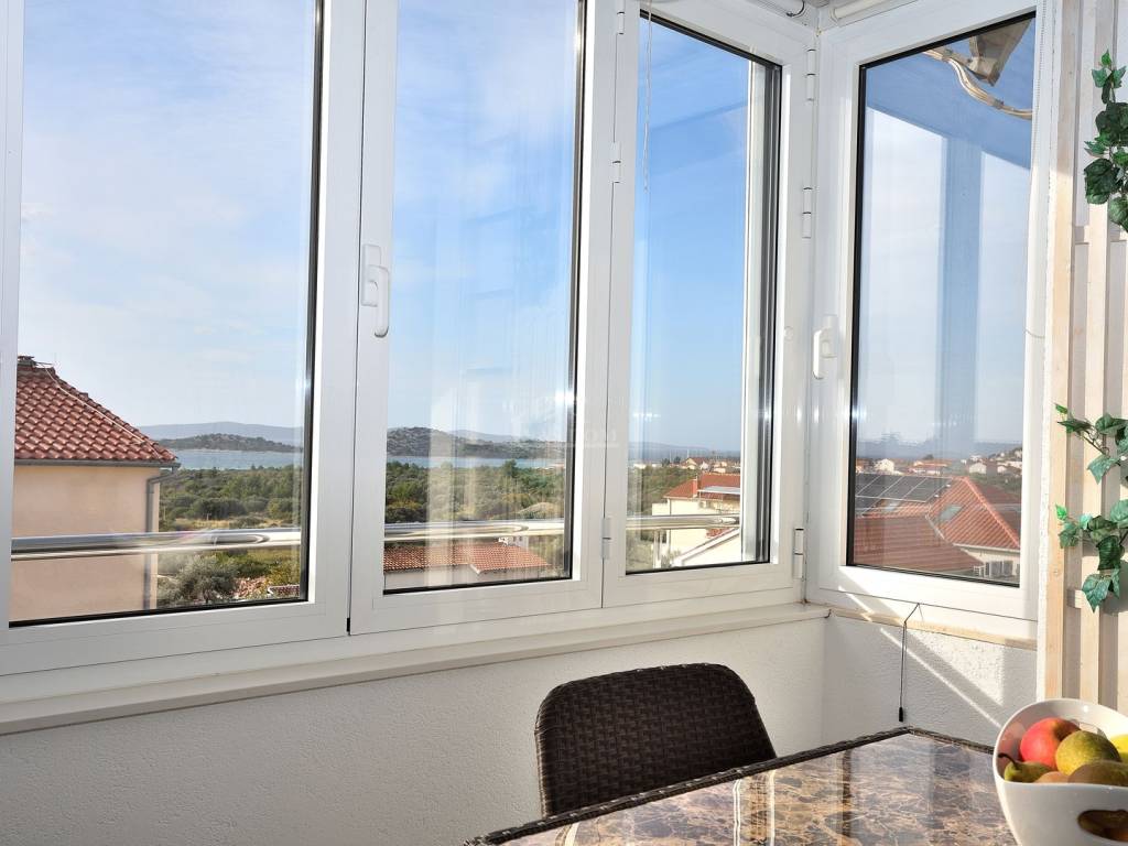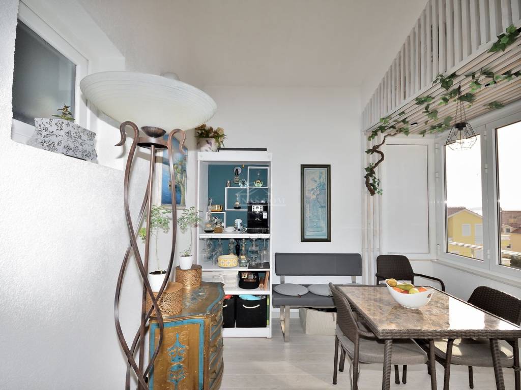 Vodice – for sale an apartment with a sea view near the beach. The apartment is located on the second floor / high attic of a residential building with a total of 9 residential units. It has a total net living area of 35.74 m2 and consists of a hallway, bedroom, kitchen with dining area, living room, and a loggia that is fully glazed with the possibility of opening windows. The apartment includes a storage room of 5 m2 in the building's basement and one parking space in front of the building. The building is located in a quiet area, approximately 450 m from the beach and about 1200 m from the center of Vodice. The apartment is air-conditioned (new 3.5 kW air conditioner) and furnished.