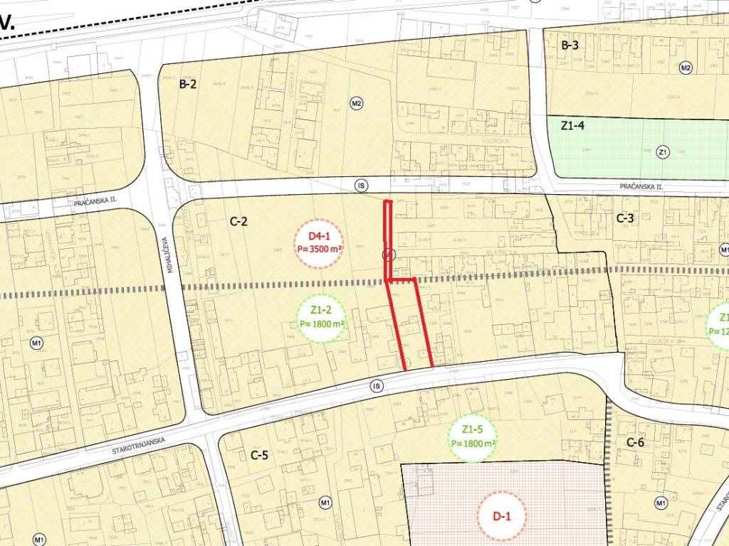 Zemljište se u cijelosti nalazi unutar građevinske zone, bloka C2 za koji nije donesen detaljni UPU (urbanistički plan uređenja) tako da gradnja van postojećih gabarita nije dozvoljena do donošenja UPU-a.