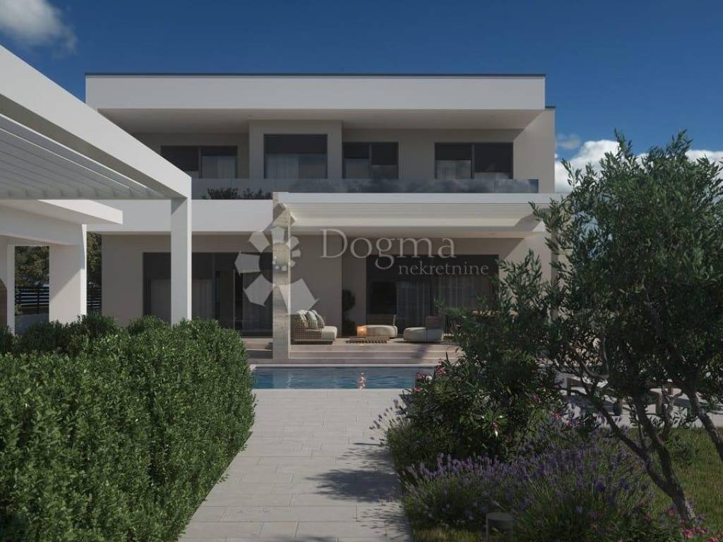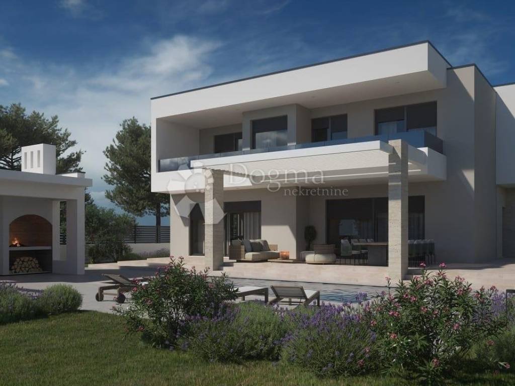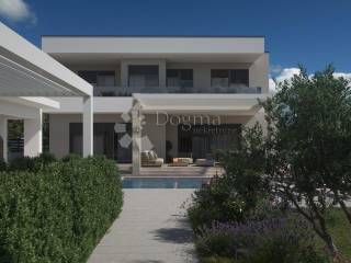 FOR SALE LUXURY VILLA WITH POOL NEAR KRKA NATIONAL PARK A luxury villa with a swimming pool and an auxiliary building is for sale in the immediate vicinity of the Krka National Park. The villa is currently under construction, and the planned completion of works and move-in are scheduled for September 1, 2025. The villa consists of two floors and has a total net living area of 238 m. It is spatially designed to provide maximum comfort and functionality and consists of four bedrooms, three bathrooms, a separate toilet, a wardrobe and a spacious living area with a kitchen and dining room. The outdoor area includes a swimming pool with a sundeck, a covered terrace and a landscaped courtyard. The construction is carried out using high-quality materials according to the latest standards. Among the equipment we highlight: Joinery: ALU Schuco AWS 75 entrance door, double-sided hidden leaf, security electric lock and code book PVC Gealan lift-and-slide walls Gealan S 9000 windows Roller shutters with electric motors Triple-layer glass and mosquito nets Heating and cooling: Water underfloor heating Built-in wood-burning fireplace Air conditioning in all rooms Preparation for a solar power plant on the roof Security: Video surveillance Floor coverings: Ceramics in living rooms, hallways, bathrooms and on the staircase (stone) Three-layer parquet in the bedrooms Facade and exterior: STO brand facade, 10 cm thick Ceramic coverings on terraces and sundecks ALU pergola above the pool area Summer kitchen with barbecue Covered parking ALU fence on the surrounding walls, sliding patio door with electric motor Room layout: Ground floor (125.66 m): Entrance, hallway, living room, kitchen and dining room, bedroom, bathroom, staircase, exit to the terrace with swimming pool and courtyard. On the ground floor there is also an auxiliary building with an area of 11.31 m, while the swimming pool has dimensions of 7.75 4 m (30.22 m). First floor (111.99 m): Three bedrooms, two bathrooms, wardrobe, hallway, staircase, balcony and loggia. The villa has secured space for five parking spaces. The distance from the sea and the nearest beach is approximately 5 km as the crow flies. Price: 745,000.00 For all additional information and to arrange a viewing date, please feel free to contact us.