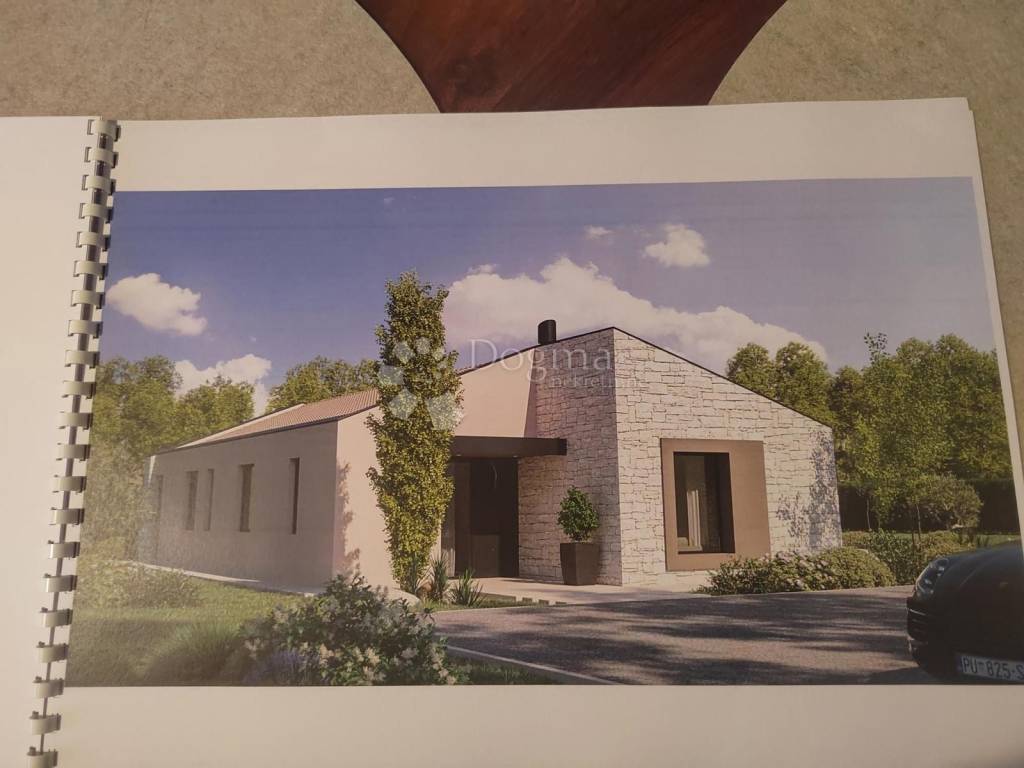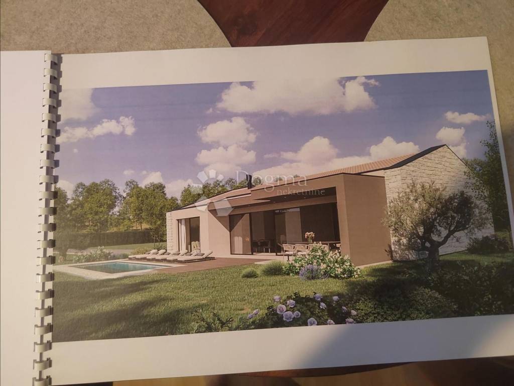 Prodaje se građevinsko zemljište površine 1.818 m s gotovim idejnim projektom za modernu obiteljsku kuću neto površine 107 m (ukupno 134 m s terasama) te bazenom površine 24 m.