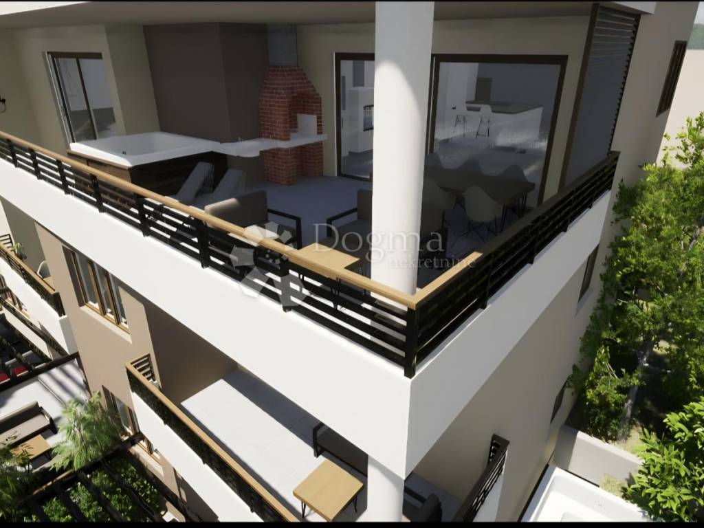 We offer a spacious and well-equipped apartment located on the third floor of a small residential building with an elevator, with a total of six residential units. Located in a quiet location, the apartment offers an ideal combination of functionality, comfort and a modern lifestyle. The apartment consists of three bedrooms, two of which have their own bathroom and dressing room, while the rest of the apartment has another separate toilet, a hallway and a spacious living room connected to the kitchen and dining room into a single unit. The living area opens onto a covered loggia with an open view of the sea. The building is fully south-oriented, and the apartment is equipped with PVC joinery with thermal and sound insulation, electric roller shutters, air conditioning in each room, video intercom and underfloor heating in the bathrooms. The apartment has one outdoor and one garage parking space, as well as a storage room in the basement of the building. Completion of the works is planned for spring 2026. For additional information and viewing, please feel free to contact us.