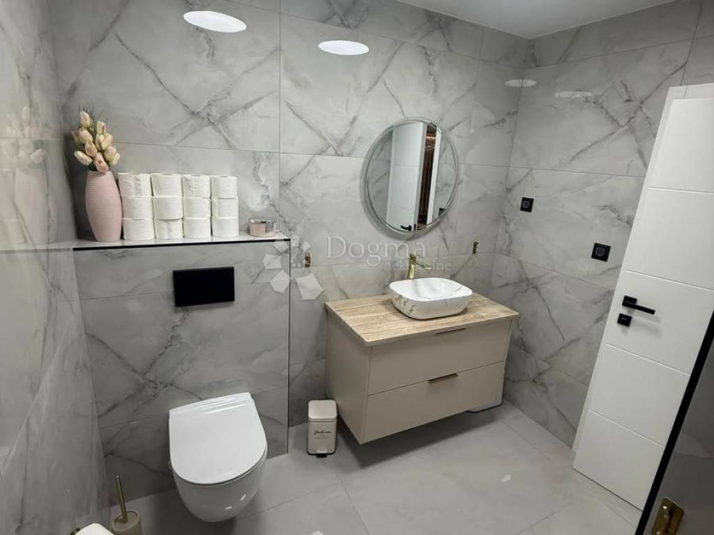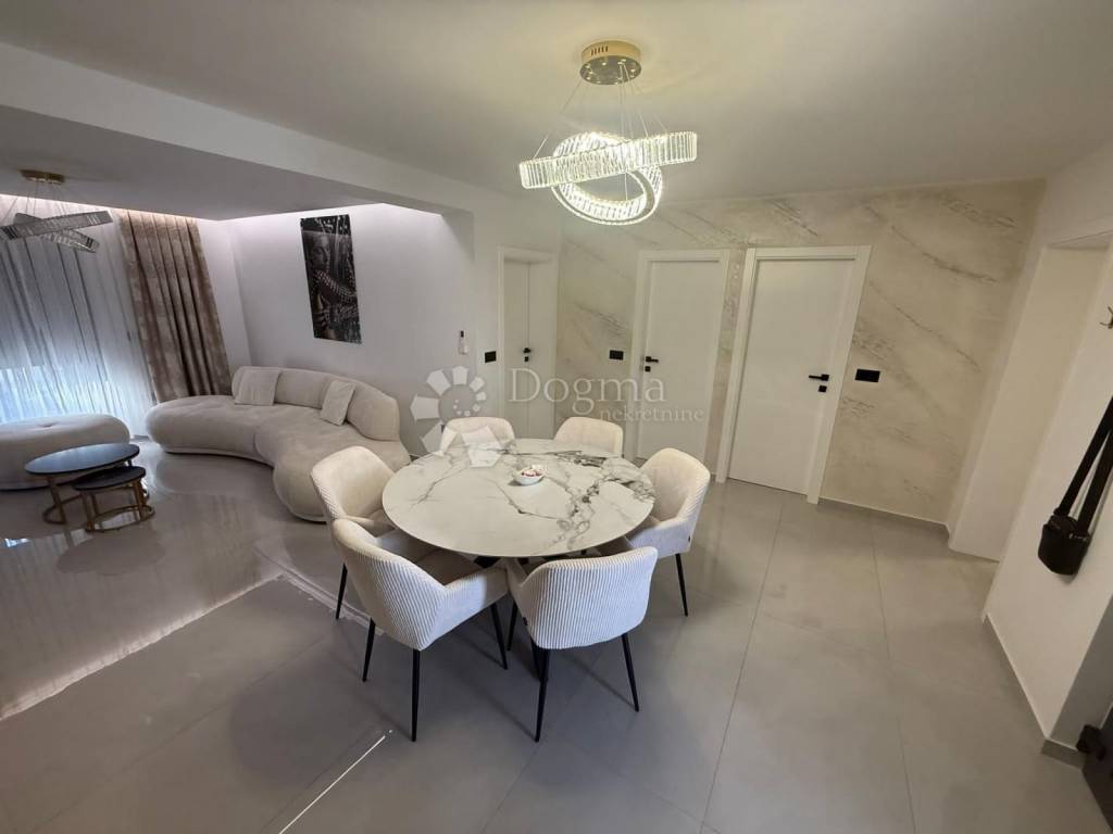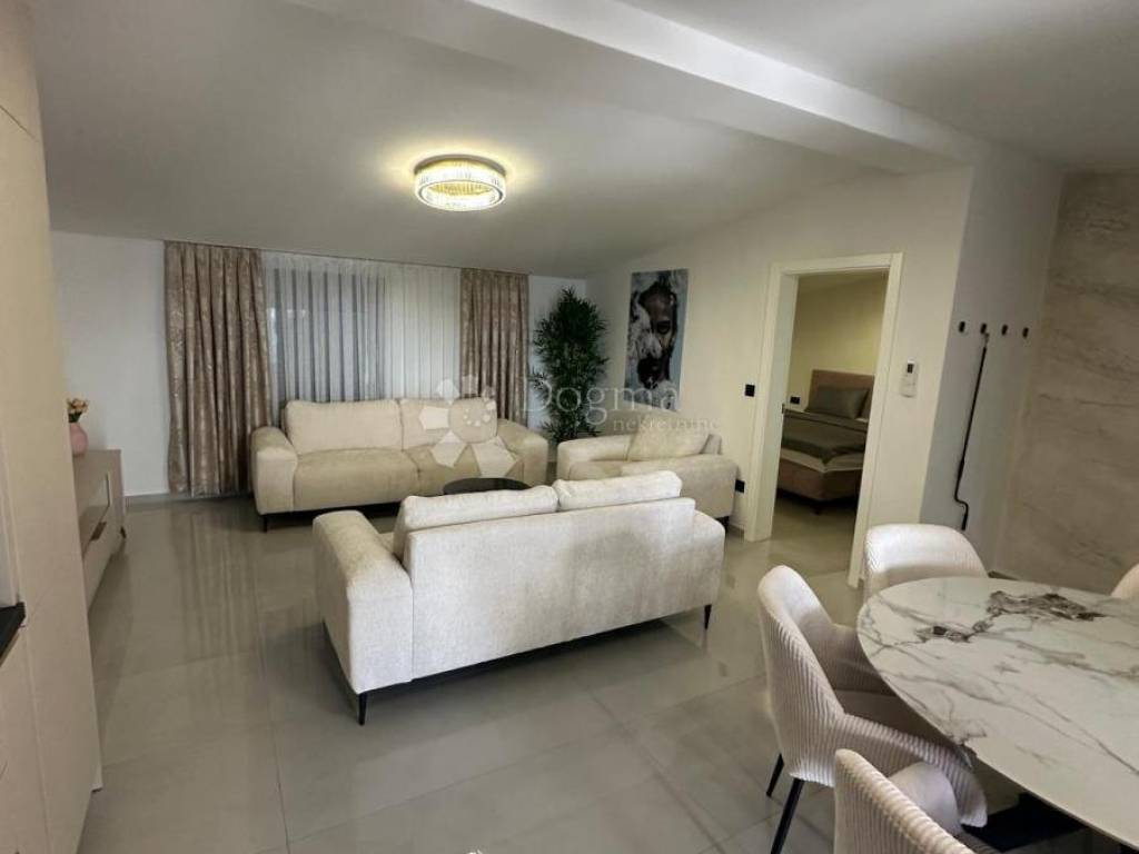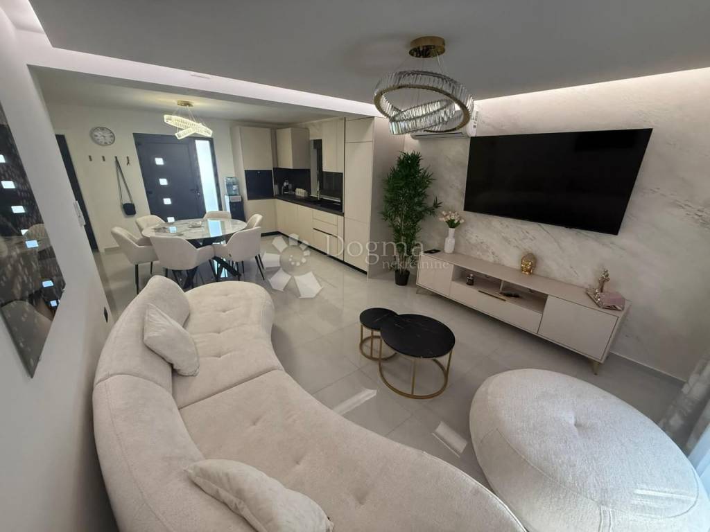 A modern villa of 344 m2 in total is for sale, consisting of 2 residential units, ground floor and first floor, made in top quality, meets all needs, 120 meters from the beach, for sale in the most frequented part of the island of Vir! Both living units consist of 2 bedrooms, living room/kitchen, bathroom/wc, storage room, covered and closed terrace. Underfloor heating, and air conditioning system. The apartments are for sale with high-quality furniture, quality equipment and an extremely pleasant atmosphere! The total area of the 2 apartments is 206m2. The yard also has an exclusive design, a 28m2 heated pool with sea water, a large stone barbecue, and a storage room. The exterior is surrounded by palm trees and olive trees. Ownership and papers are in order 1/1. Contact us with confidence, Nikola 0923827530