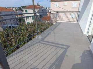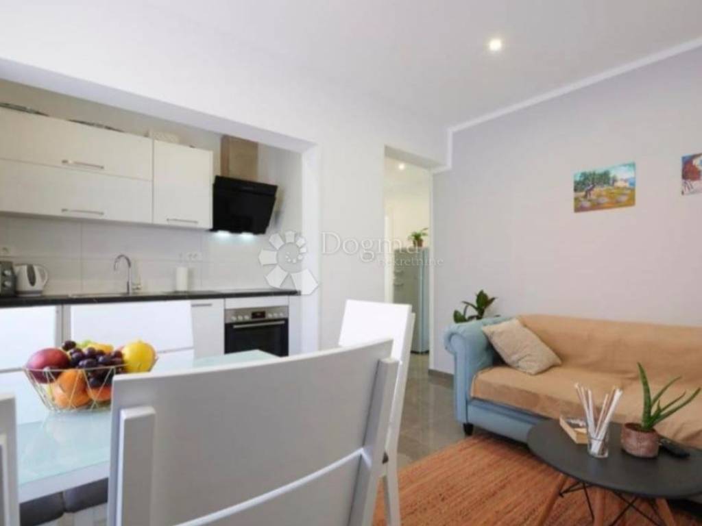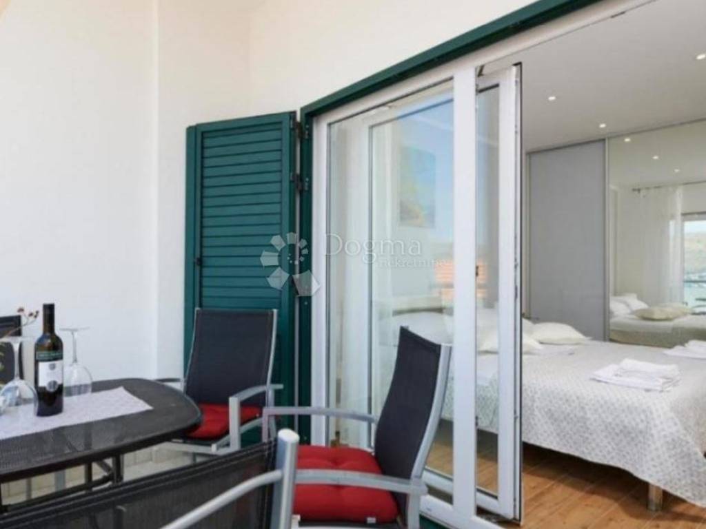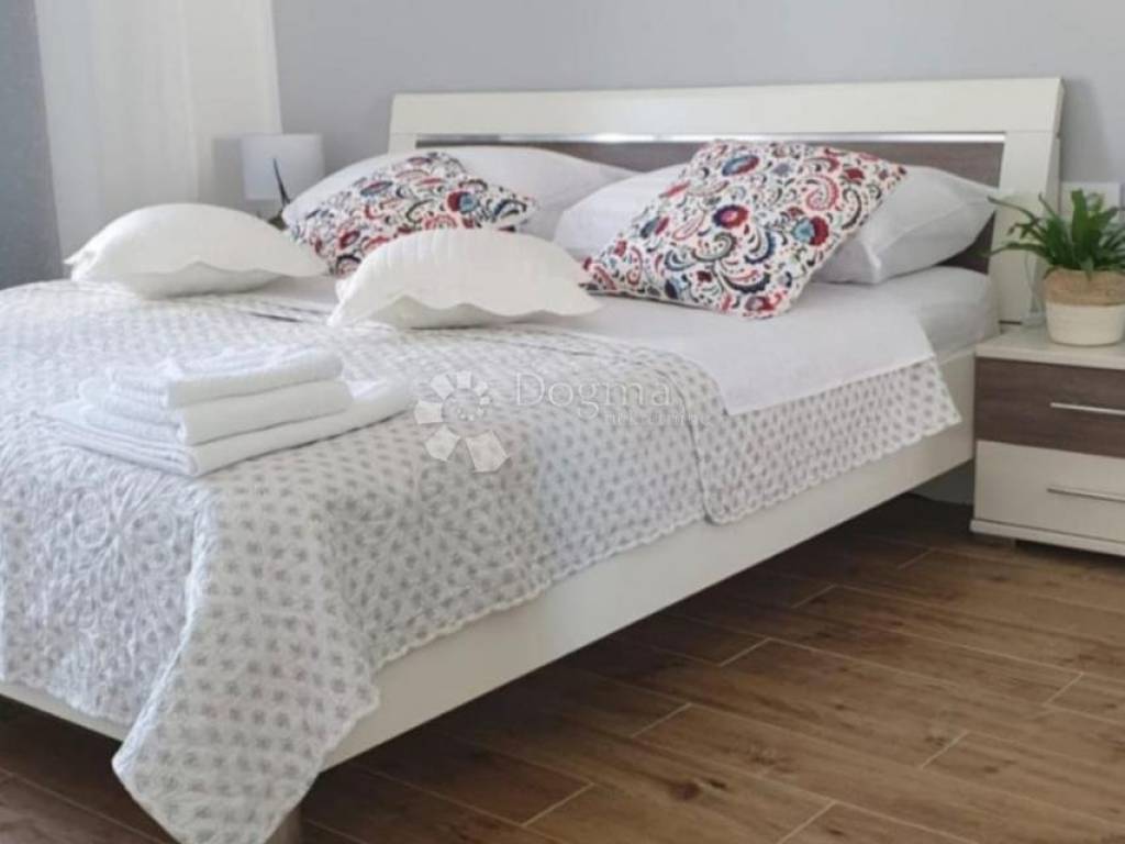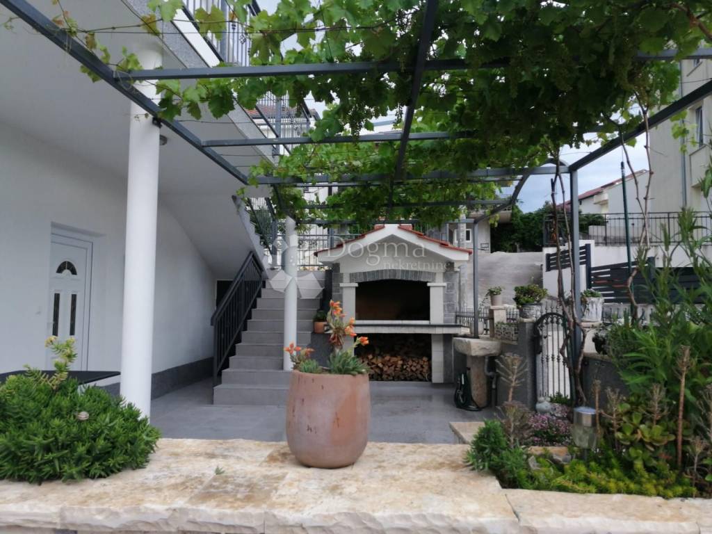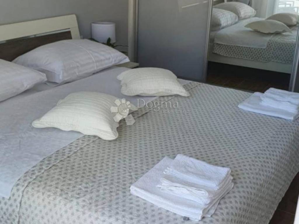 For sale is a semi-detached house in Okrug Gornji, situated in a prime location, only about 150 meters from the sea. The house consists of two two-bedroom apartments, each measuring 50 m. One of the apartments needs to be converted into living space, in order to be used for tourist rental. The 125 m plot of land further complements this property, and there are three parking spaces, a barbecue and a beautifully landscaped small garden, perfect for enjoying the outdoors. The house has a sea view and is located in a quiet environment, but close to all important amenities. The apartments are modernly decorated and equipped, and the property has a proper title, which makes it easy to transfer and possibly finance the purchase. An ideal choice for those looking for a home near the sea or an investment with tourist rental potential.