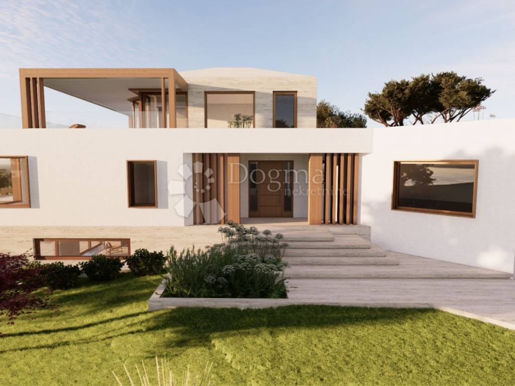 A beautiful estate is located in the vicinity of Medulin, right by the sea! The property covers an area of 6,594 m2, of which 2,126 m2 is building land, while the remaining part is agricultural. On this beautiful plot, there is a house with a total net area of 303 m2, built in the year 2000, with a valid building permit for reconstruction to fully realize the potential of this unique property.