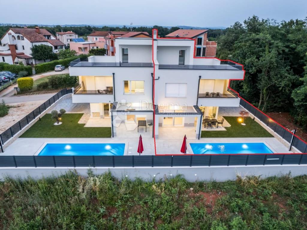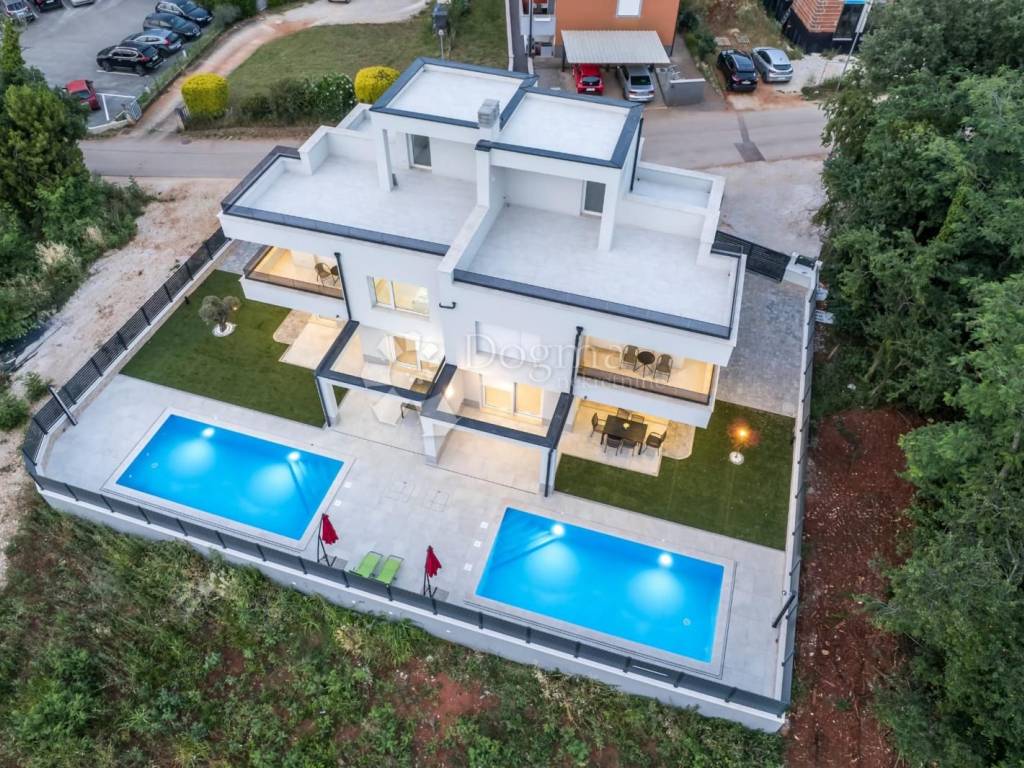 For sale is a modern semi-detached house with a heated pool and sea view, located in the peaceful surroundings of Umag. The net usable area of the house is 140 m, while the land covers 300 m.