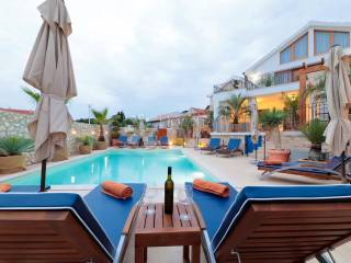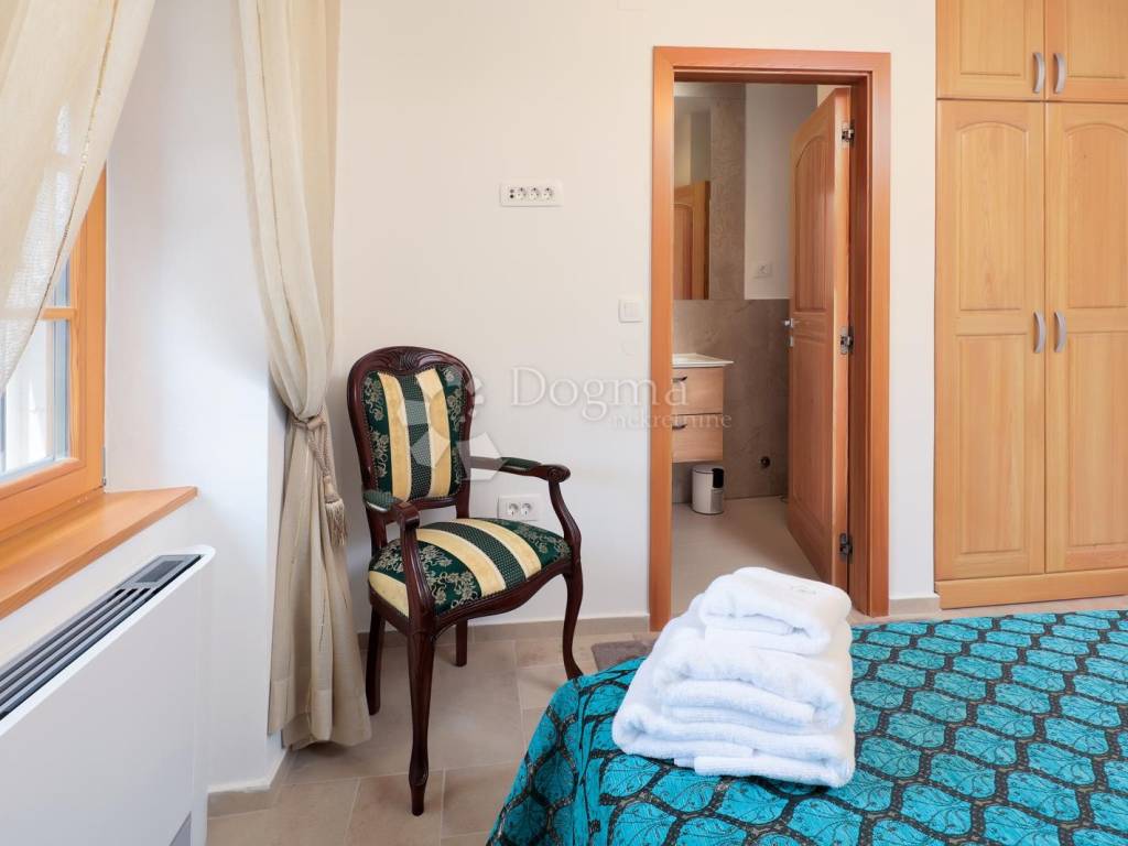 This exceptional house offers 280 square meters of pure luxury and Mediterranean charm. Each of the three bedrooms has its own bathroom, ensuring maximum comfort and privacy. The interior exudes warmth thanks to carefully selected rustic furniture, while the spacious living room and kitchen provide an ideal space for everyday living or tourist rental. A special atmosphere is created by the dining room designed in the style of a traditional wine cellar, perfect for gatherings with traditional dishes and fine wines. Two terraces with sea views and the pool complete the experience of a true island villa.