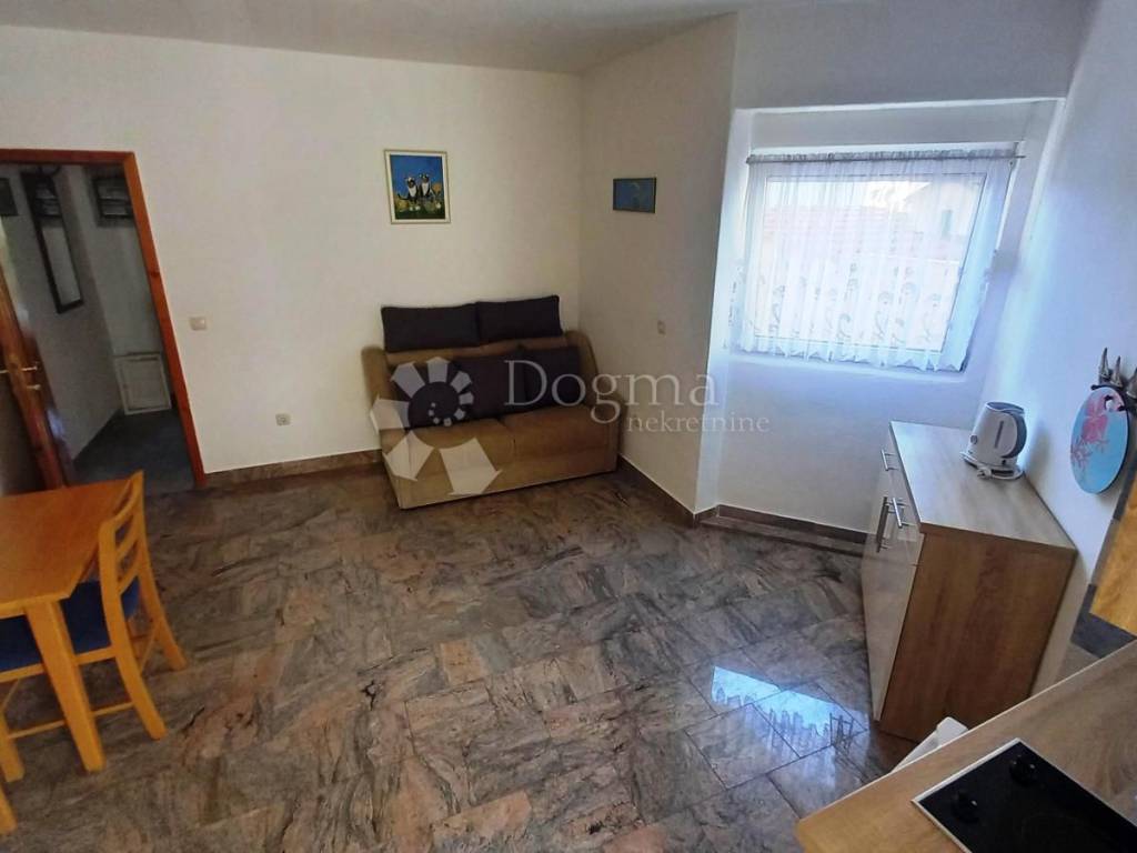 The apartment consists of a living room with kitchen and dining area, a bedroom, a bathroom, and a small storage room. A special highlight is the covered, south-facing balcony ideal for relaxing during warm Dalmatian evenings.