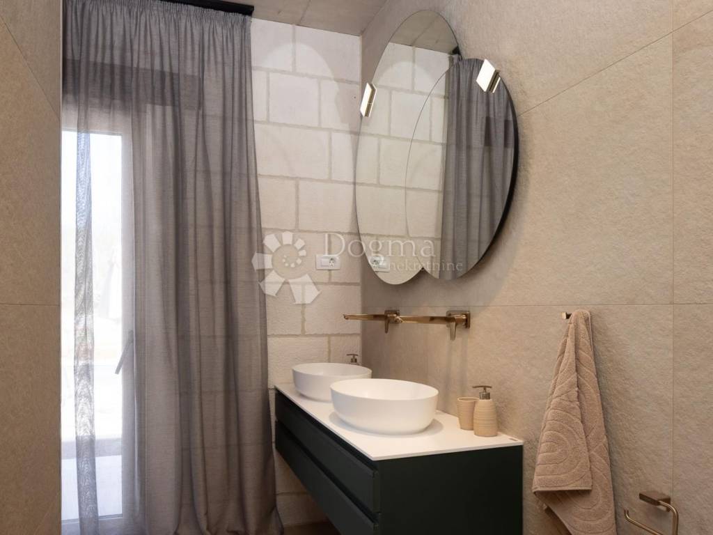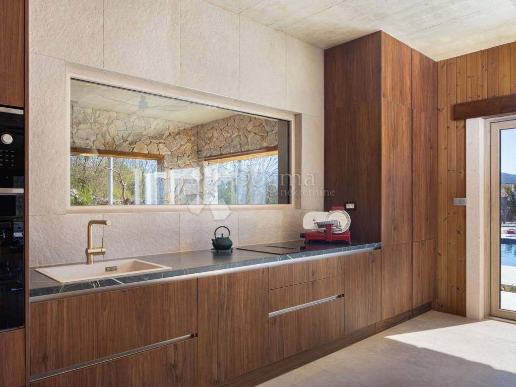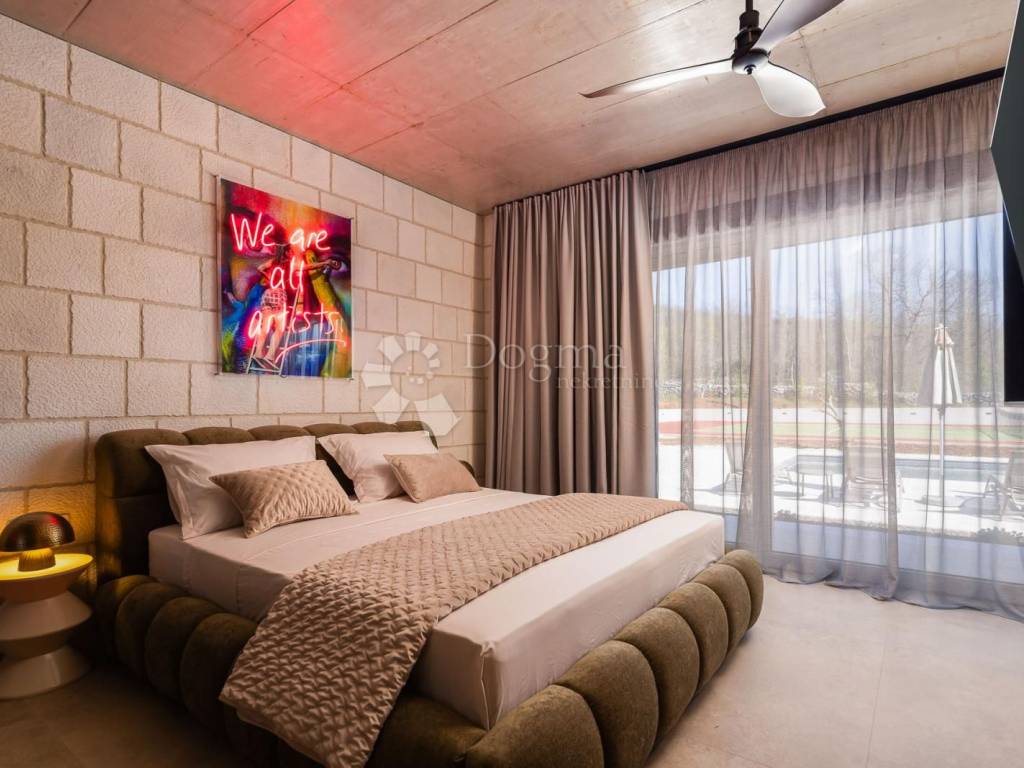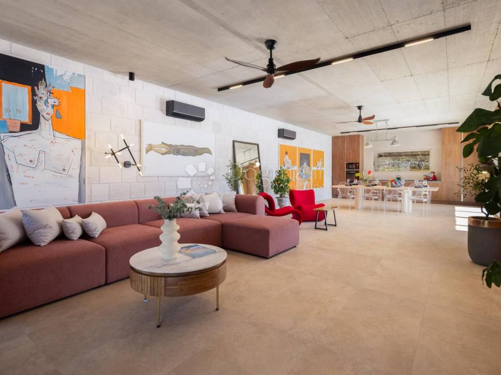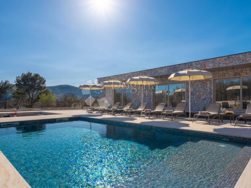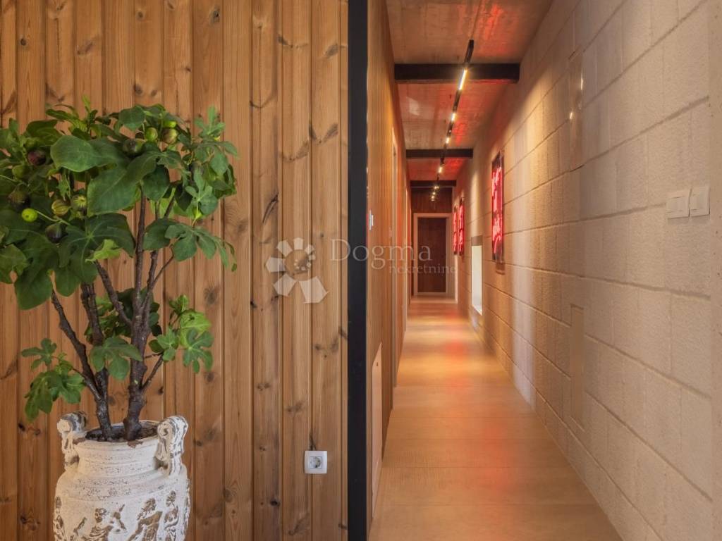 On a spacious plot of almost 3,000 m, surrounded by olive trees, there is a newly built villa that provides a perfect balance between seclusion and proximity to the city, for long-term rent The villa covers 240 m and is a combination of modern and traditional Dalmatian style. Glass walls connect the modern kitchen and dining room and the spacious living room with the outdoor terrace. Everything is equipped with top-quality furniture and artwork, and attention was paid to every detail: the house is fully air-conditioned, and has underfloor heating with the possibility of adjusting it by room. The villa also has four bedrooms with private bathrooms and access to a large covered terrace of 250 m, covered with natural stone, where there is a heated pool of 45 m with sun loungers, an outdoor shower with hot water and a Serbian toilet. Next to the pool there is also an outdoor kitchen with a grill, ideal for outdoor dinners. A private tennis court with artificial grass additionally contributes to the impression of luxury, as well as a landscaped garden with an automatic irrigation system, and the entire plot is walled with a forged fence with a remote-controlled gate. This villa is not only a peaceful oasis to escape from everyday life, but also an excellent investment with high potential for tourist rental. Whether you are looking for a vacation home, permanent residence or a business opportunity, this property offers a unique combination of natural beauty, privacy and superior comfort, all about 20 km from Split.