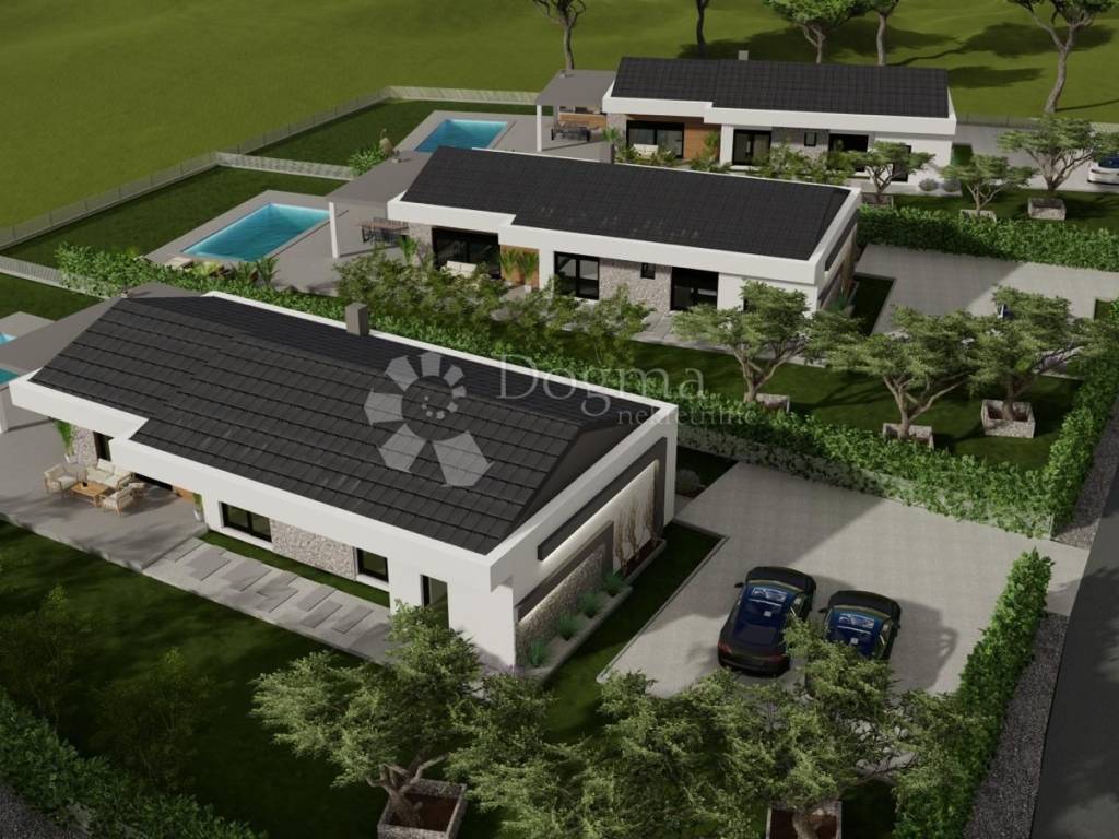 U okolici Barbana se prodaje građevinsko zemljište ukupne površine 3250 m2, podijeljeno na tri jednake parcele, svaka predviđena za izgradnju moderne vile s bazenom.