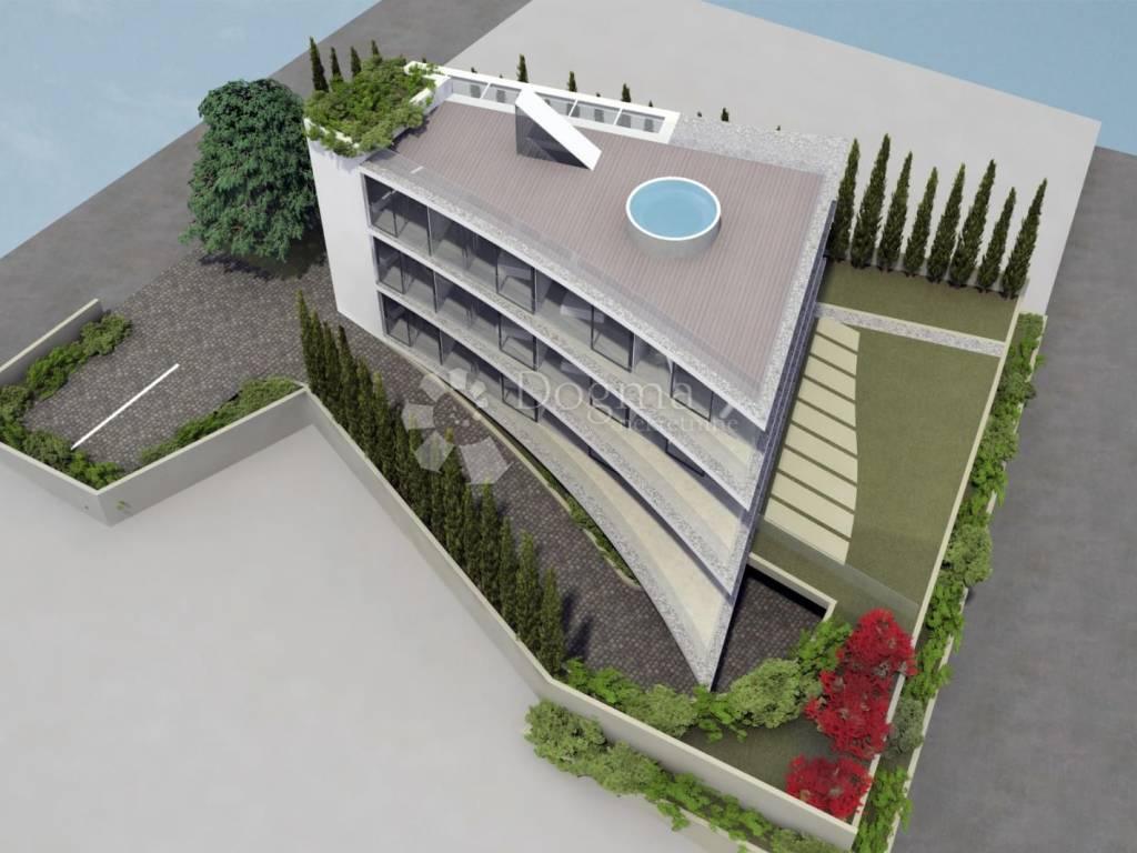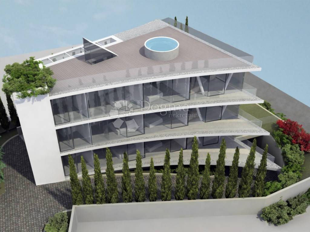 Projekt obuhvaća vrhunski dizajniranu građevinu s prostranim staklenim pročeljima i bazenom na krovu, uz elegantan mediteranski krajobraz i maksimalnu privatnost.