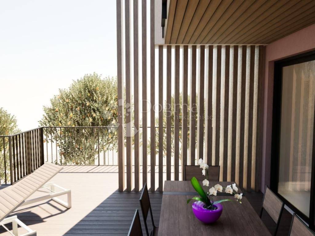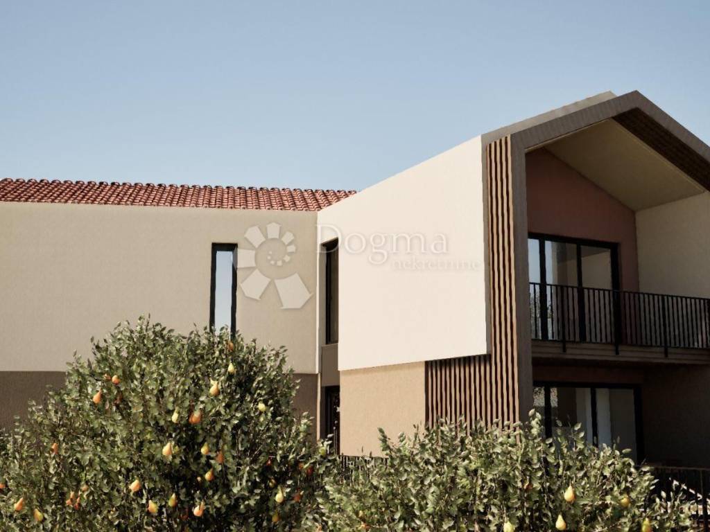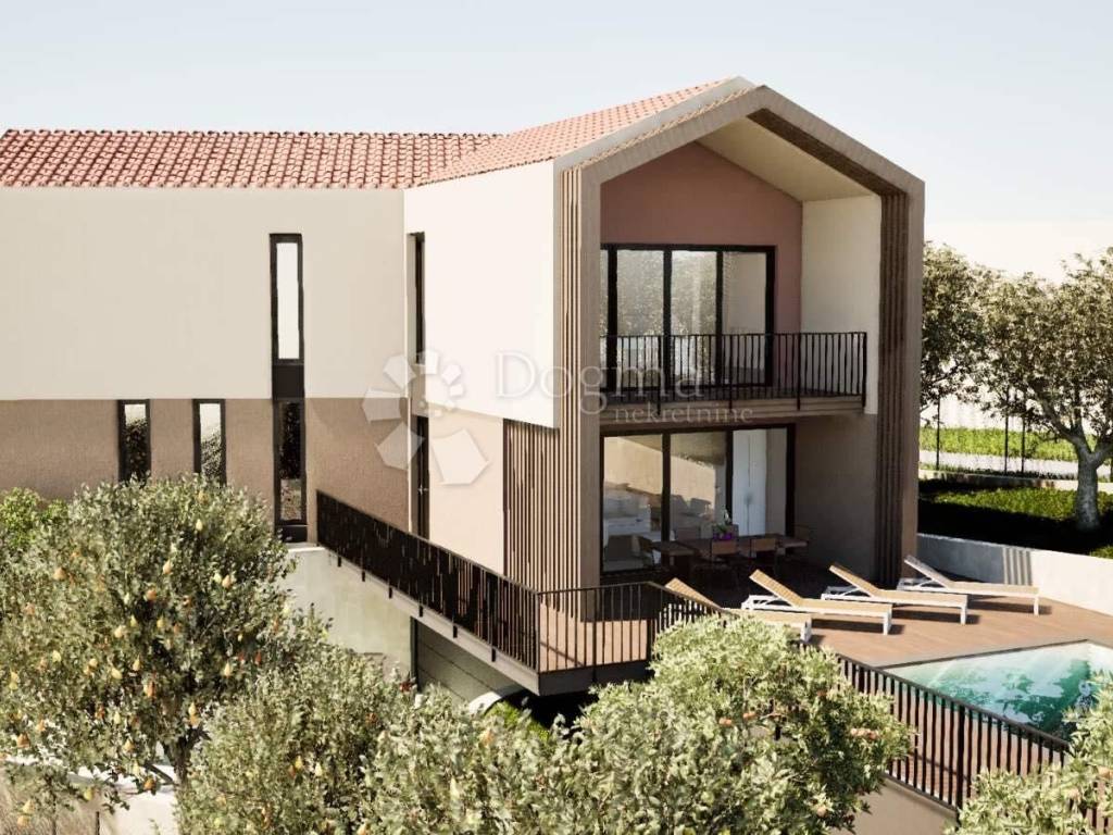 1 katu : 82m2 dvije spavaće sobe sa zajedničkom terasom , kupaonica, garderoba te master soba koja ima izlaz na veliku terasu.