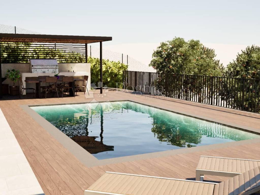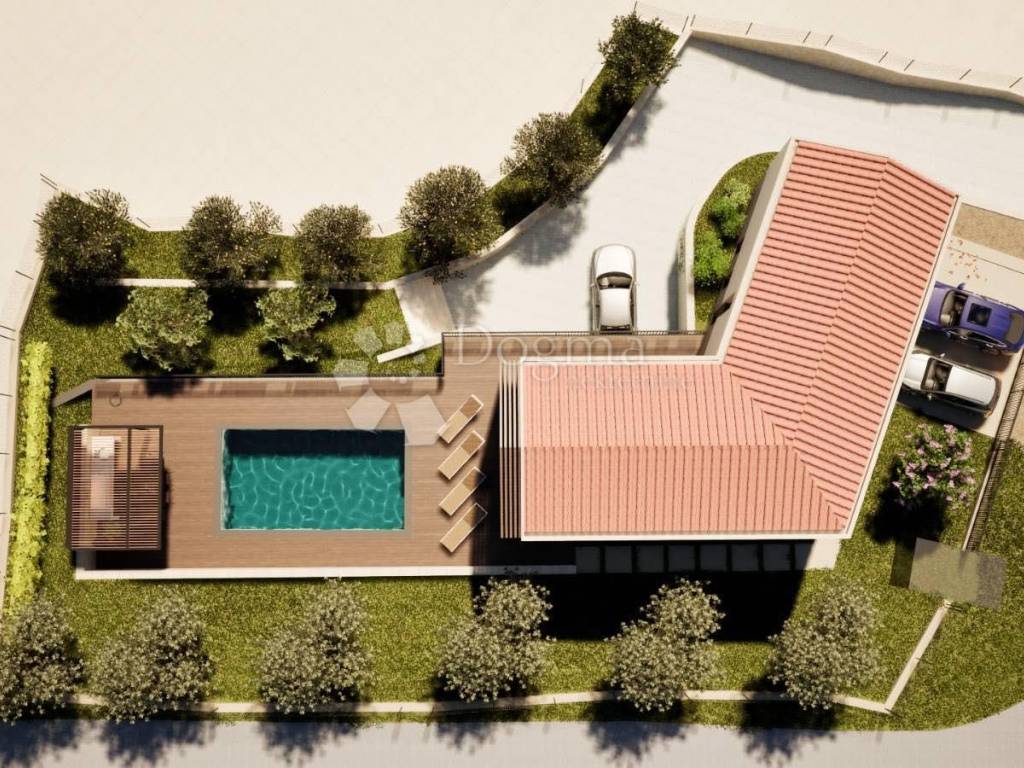 Teren se nalazi na mirnoj sunčanoj poziciji. Okolni tereni su također sa projektima za vile sa bazenom.