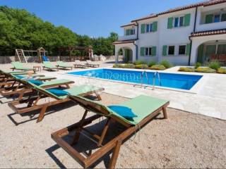 In a quiet and green location in Dobrinj on the island of Krk, three charming stone villas in a row are for sale, perfectly integrated into the Mediterranean ambience. An ideal opportunity for investment, tourism or for a quiet family life. Property description: Each villa has its own entrance and extends over two floors (ground floor + first floor) Ground floor: bathroom fully equipped kitchen with dining area spacious living room with fireplace exit to covered terrace First floor: two bedrooms bathroom exit to balcony with nature view Villa areas: Two villas with an area of 80 m One villa with an area of 95 m Shared garden - 1700 m, contains: Large swimming pool with sundeck Outdoor shower Barbecue area Children's playground Several parking spaces Other amenities: Authentic stone construction with rustic details Combination of traditional atmosphere and modern amenities Ideal for tourist rental - already established business Location: Island of Krk, town of Dobrinj - quiet, authentic coastal atmosphere Distance from the sea: approx. 3-4 km Easy transport connections and proximity to amenities For additional information, photos or to arrange a viewing, please feel free to call Ivana Magaš mob:+385 91 561 6093 ivana.magas@dogma-nekretnine.com Don't miss the opportunity to invest into a unique property on one of the most desirable Croatian islands!